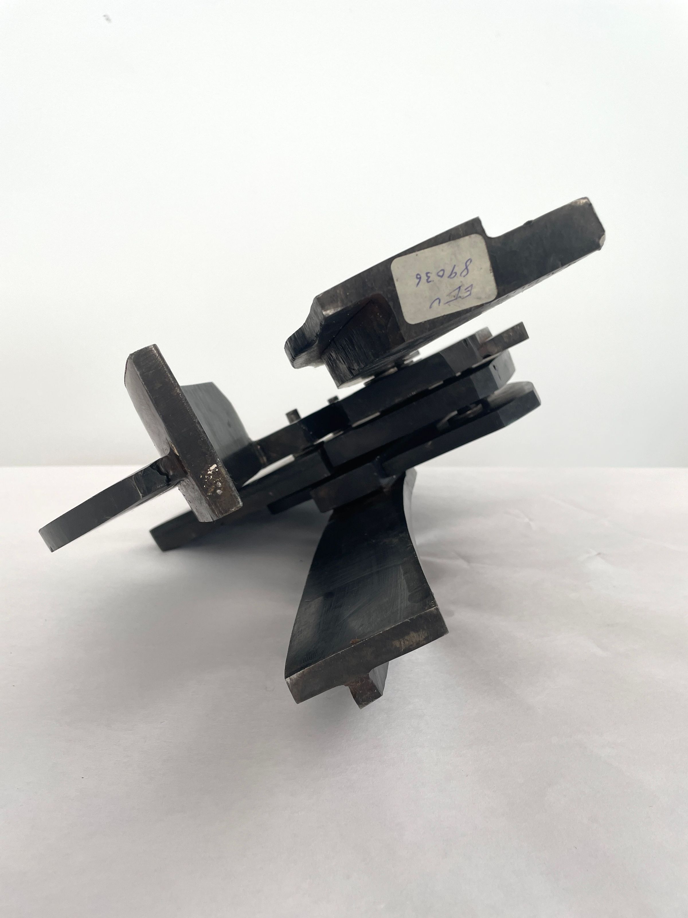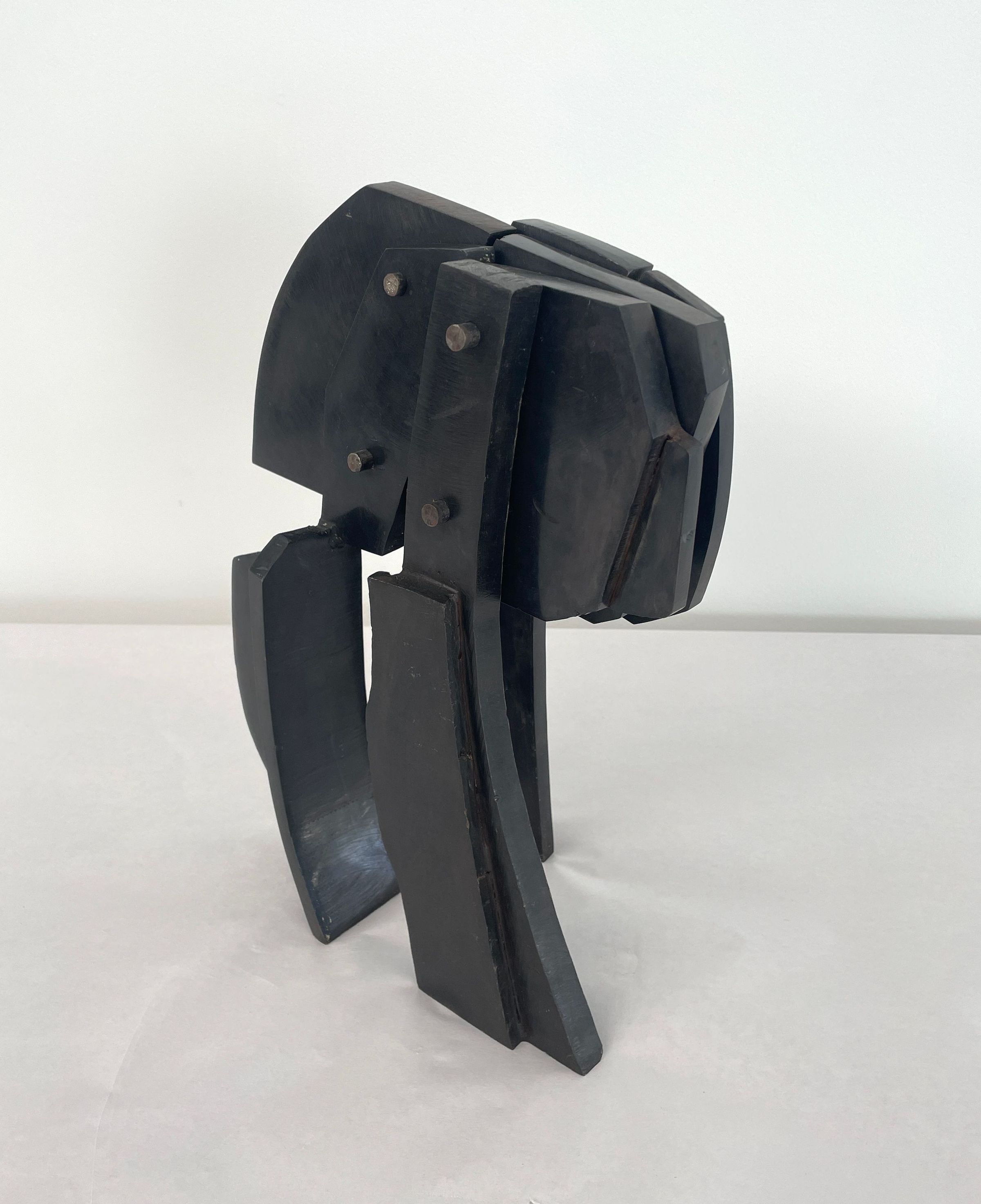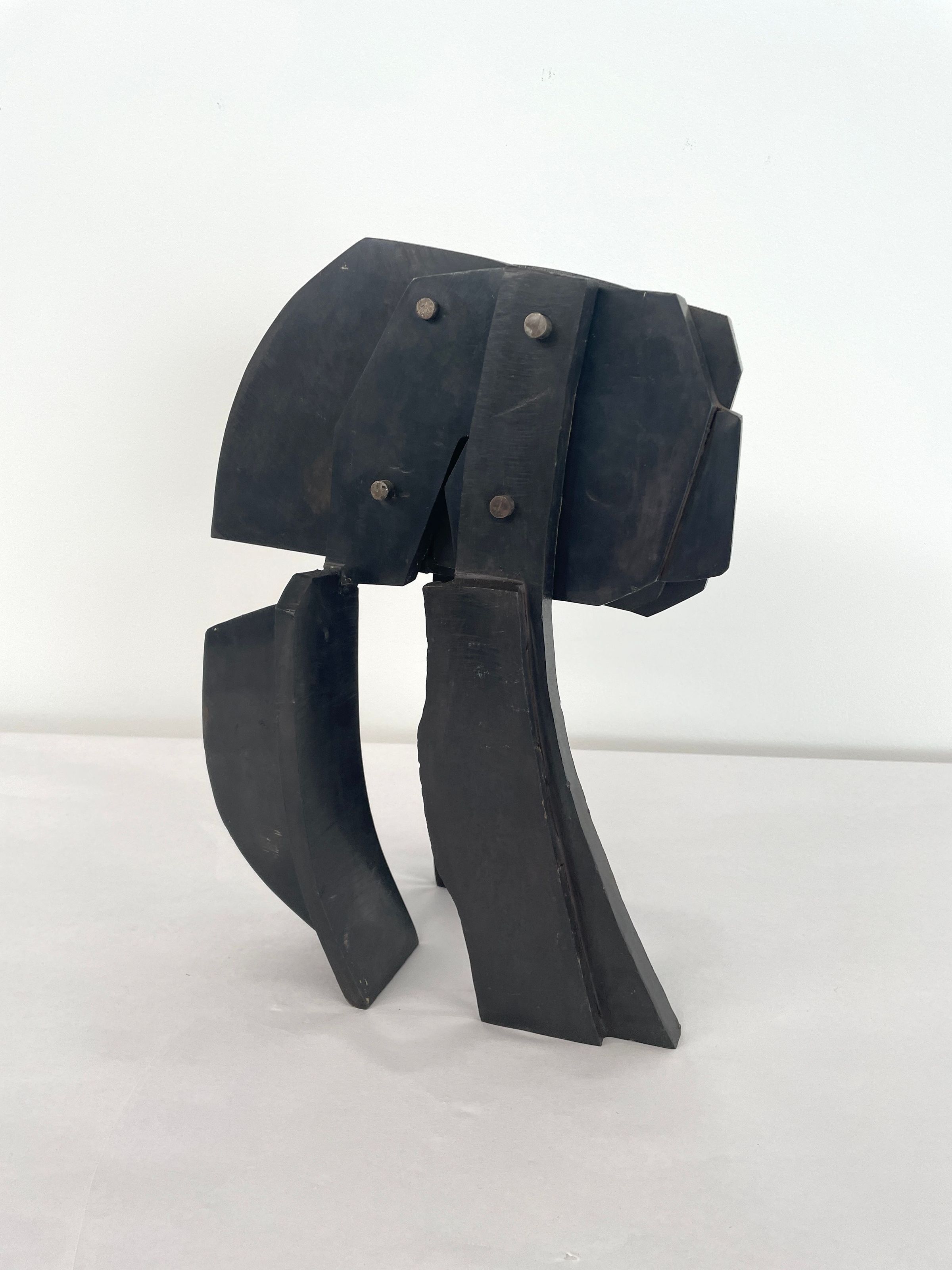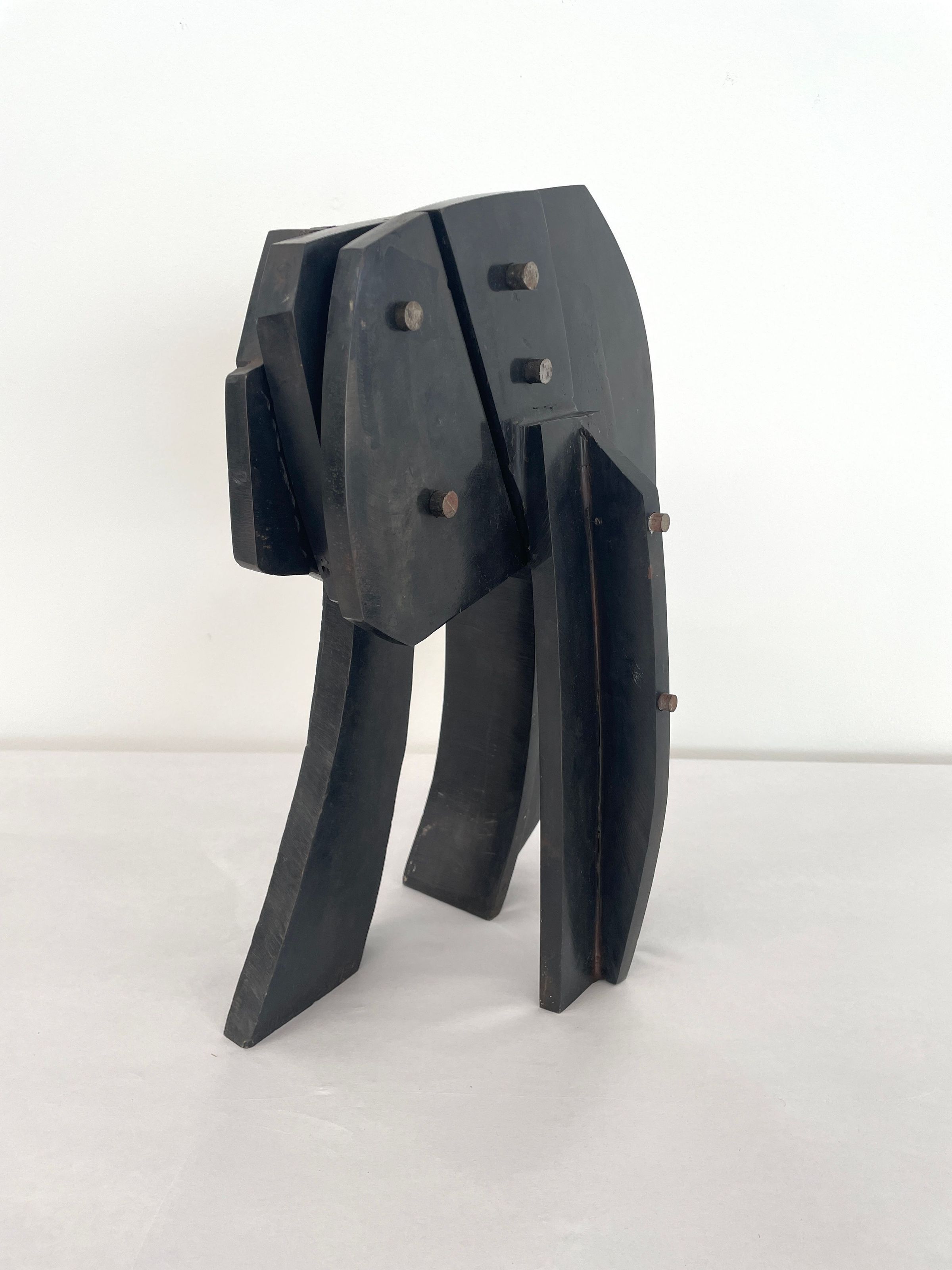 Bolted steel construction, balanced upon 3 legs, waxed surface, black in color.Collection