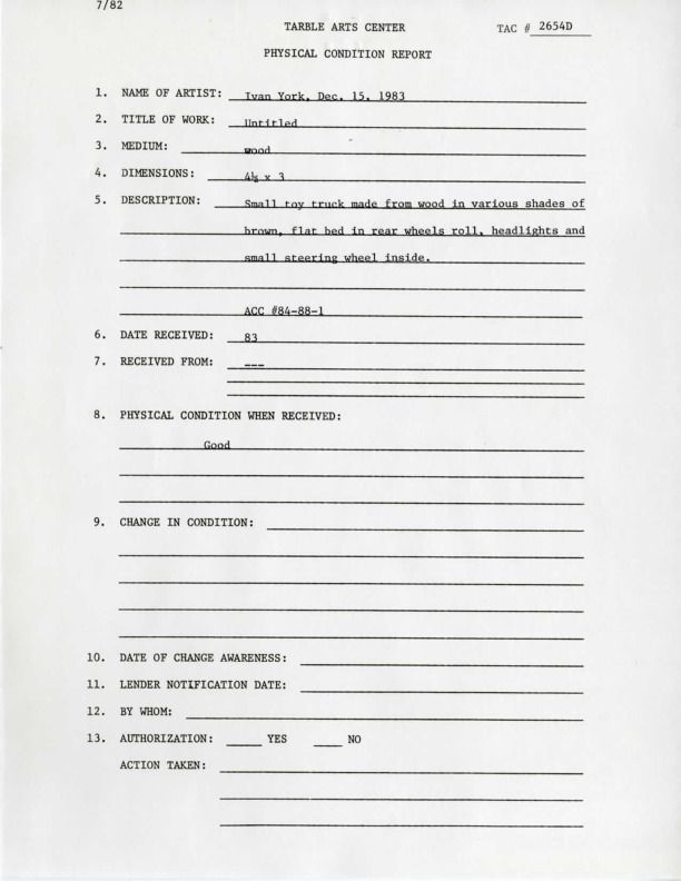 UNTITLED (TOY TRUCK)Entry/Object ID