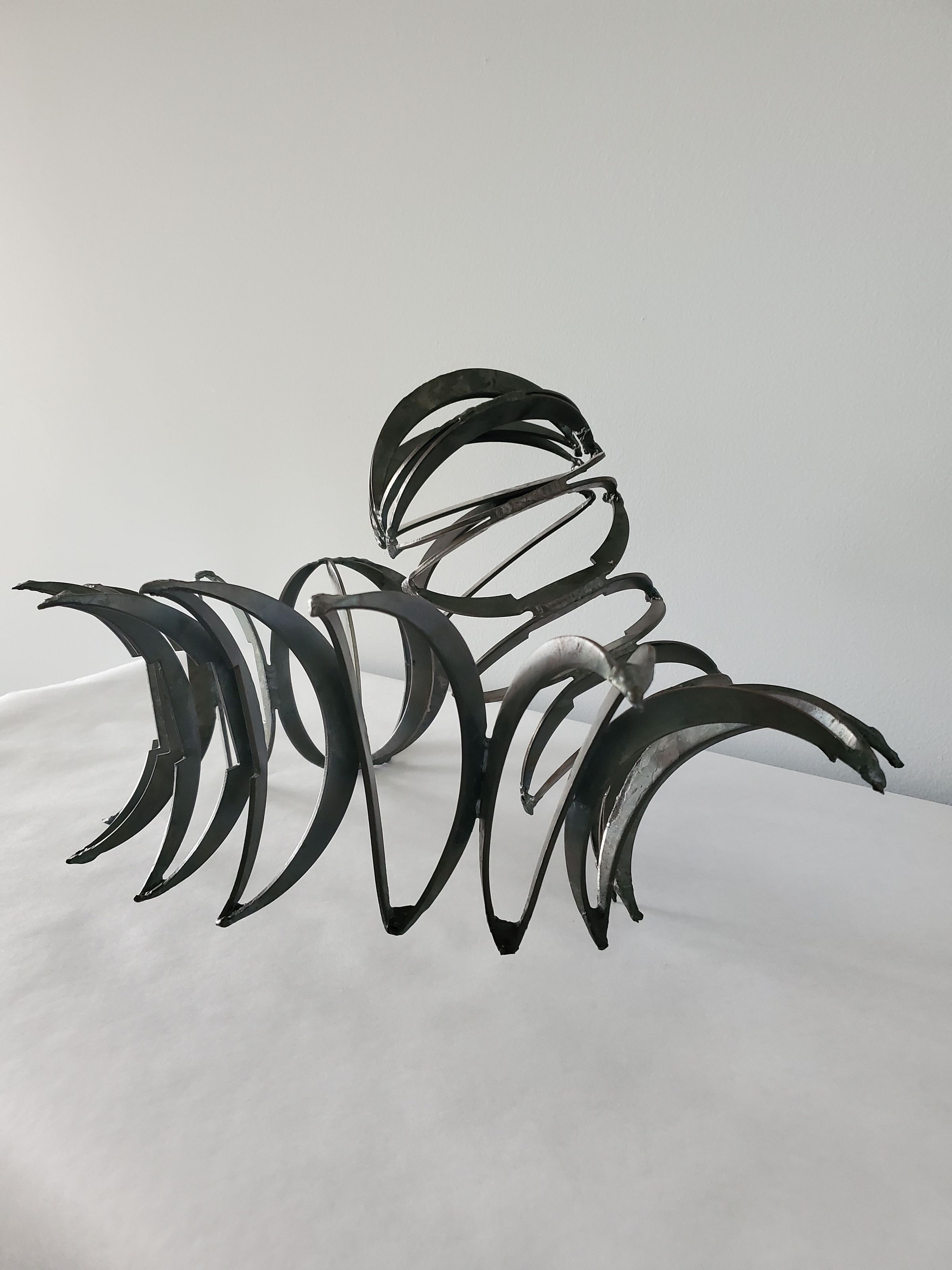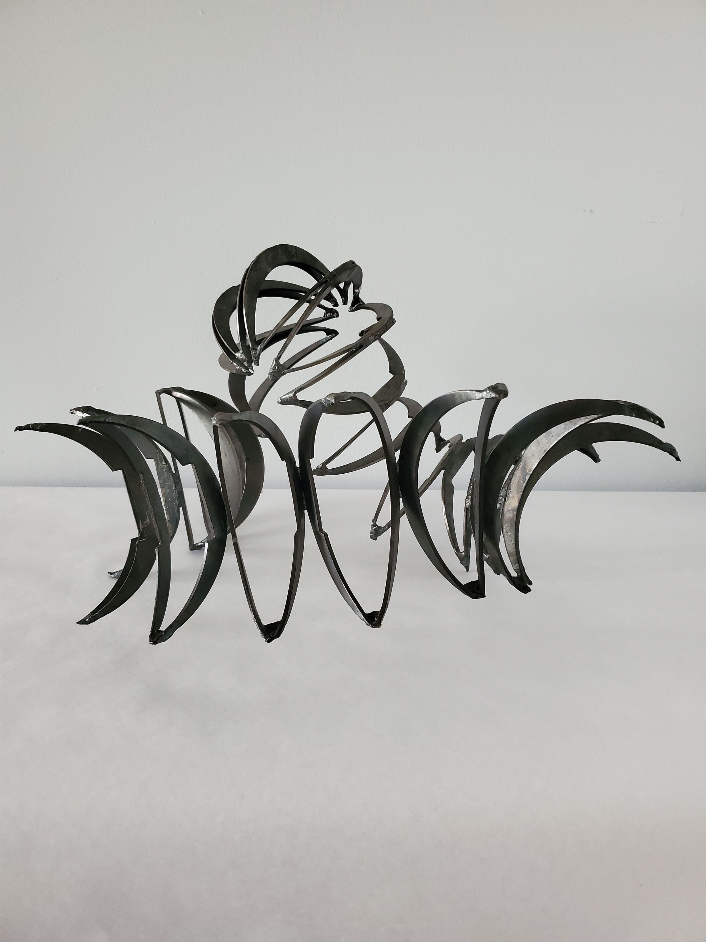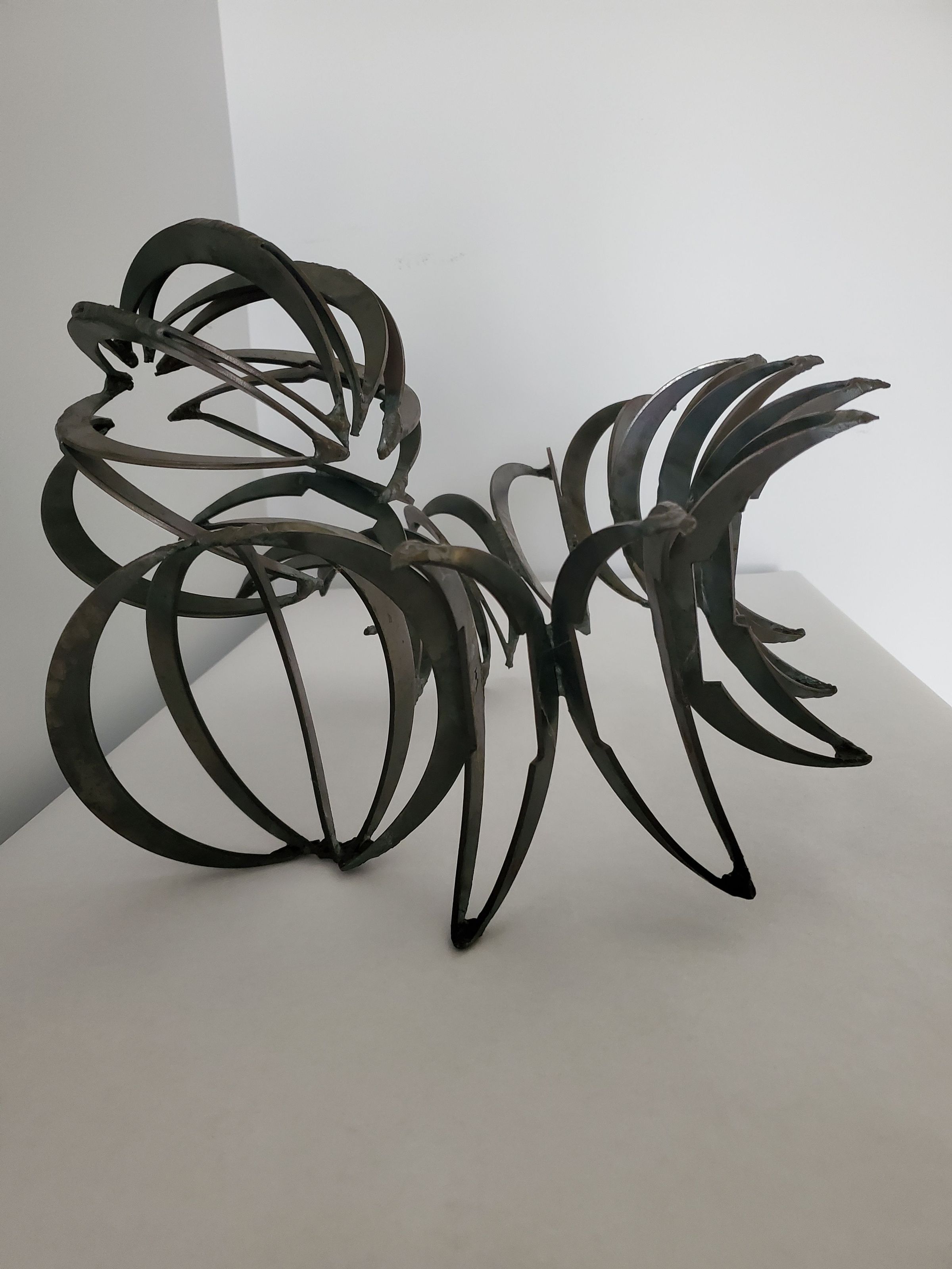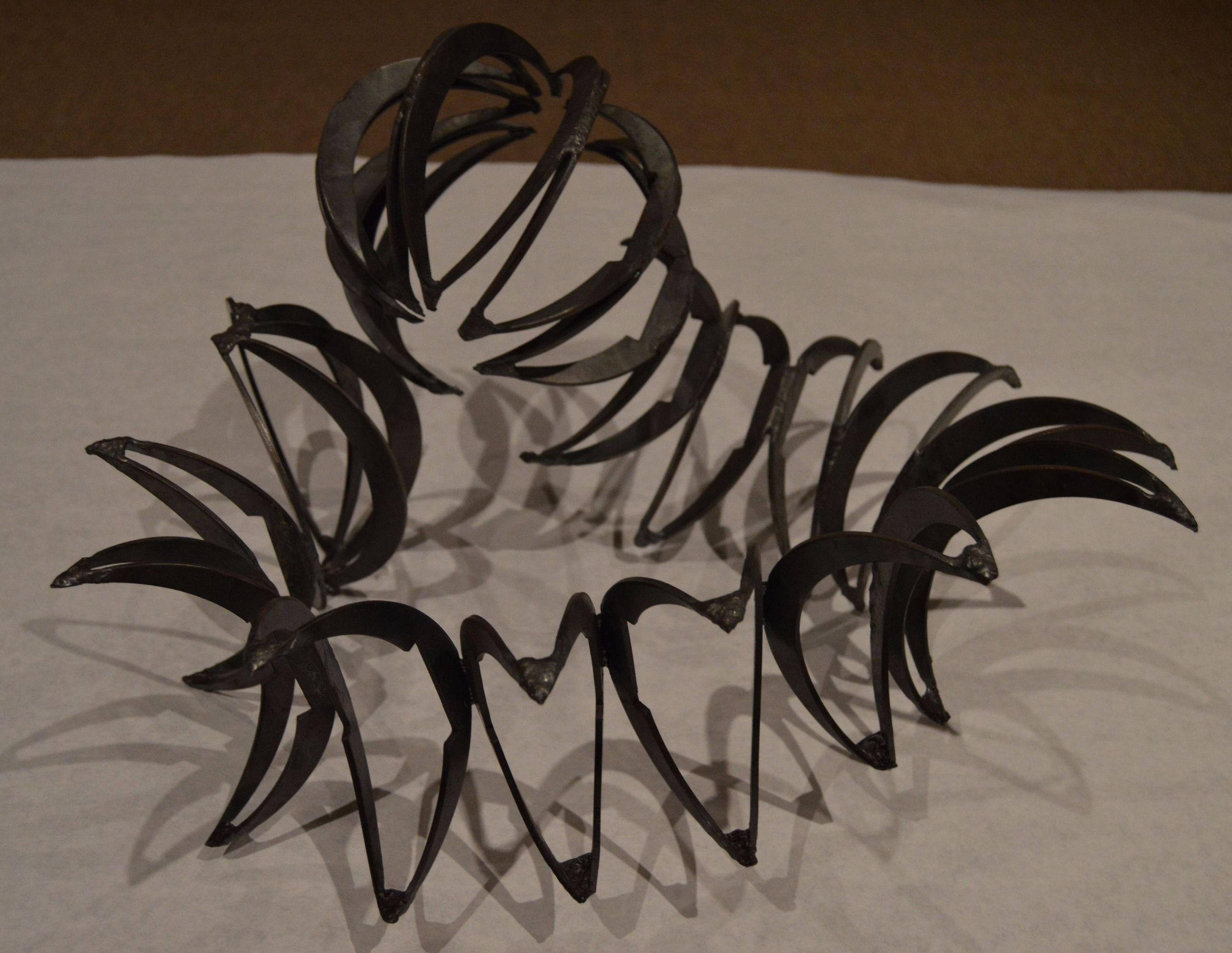 Metal sculpture utilizing 1/4 moon shaped pieces welded together to form an organic shape. Bore Steel (unfinished).Acquisition