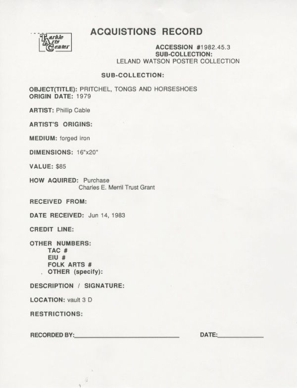 PRITCHEL- TONGS AND HORSESHOESEntry/Object ID