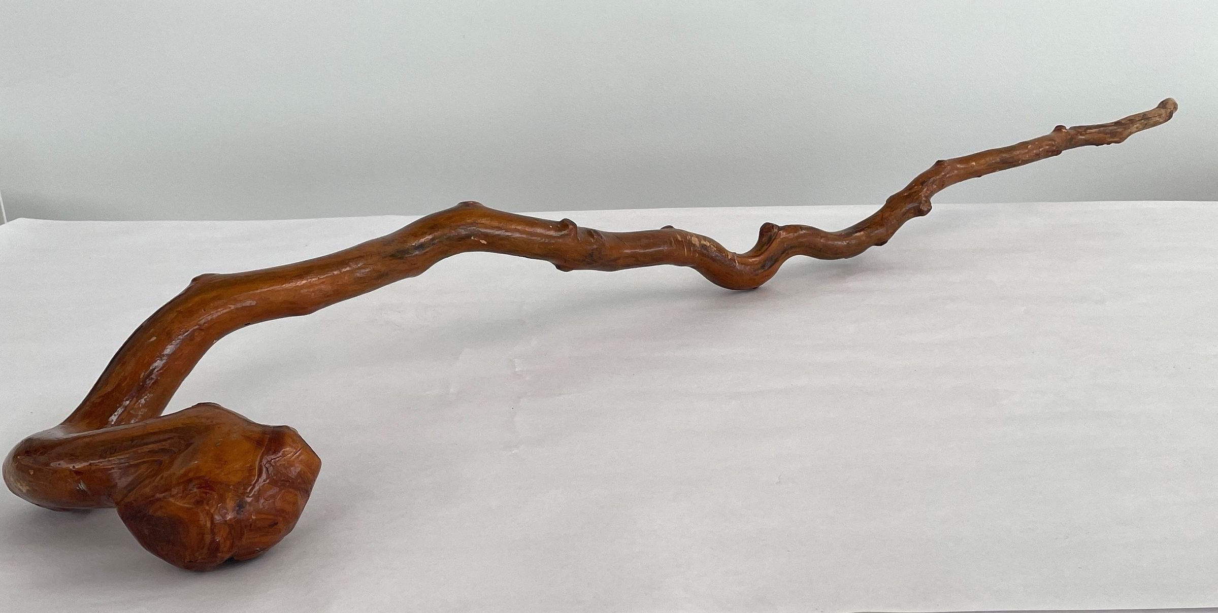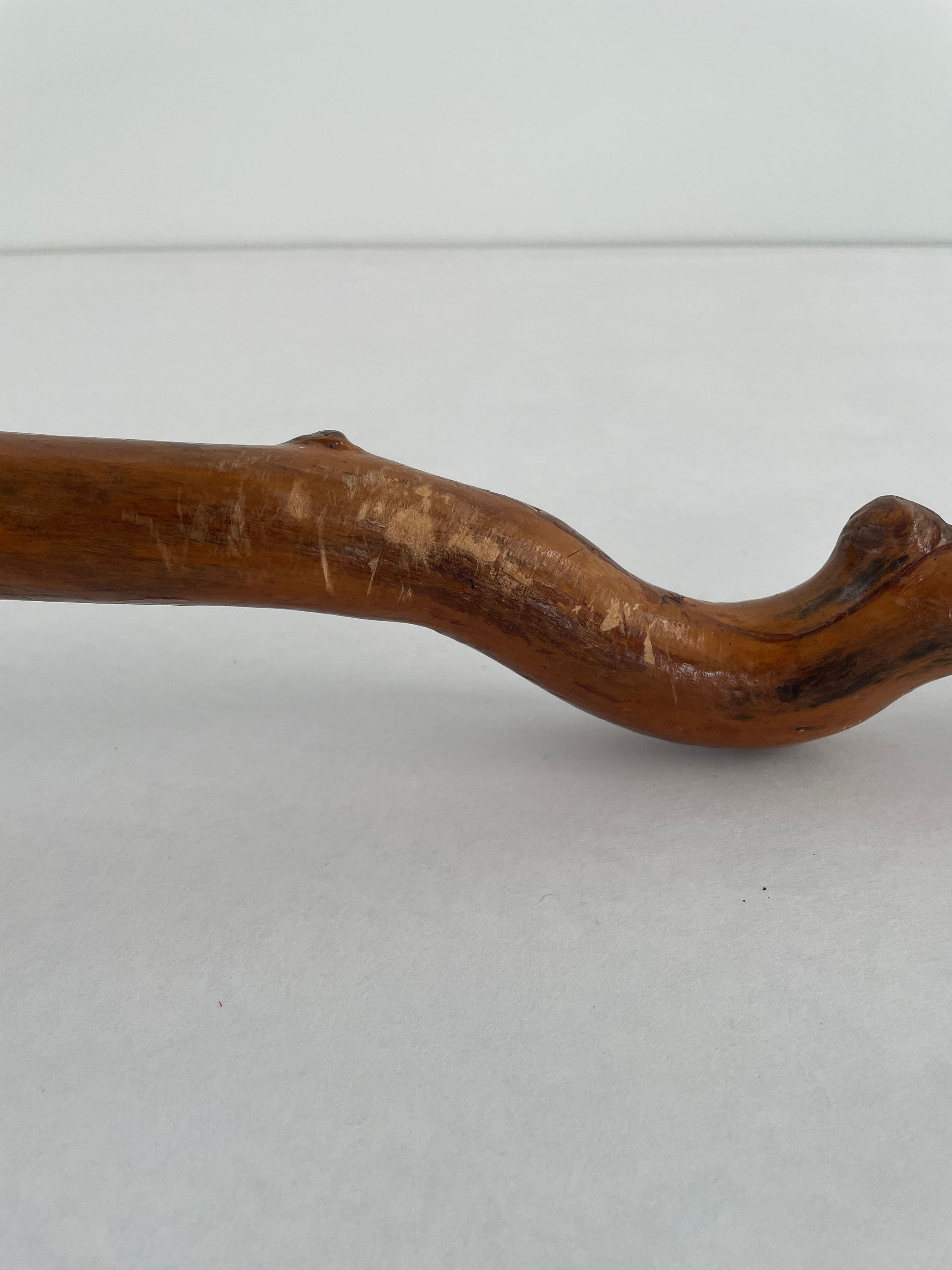 Curved and twisted cane with a thick disfigured burl handle.Collection