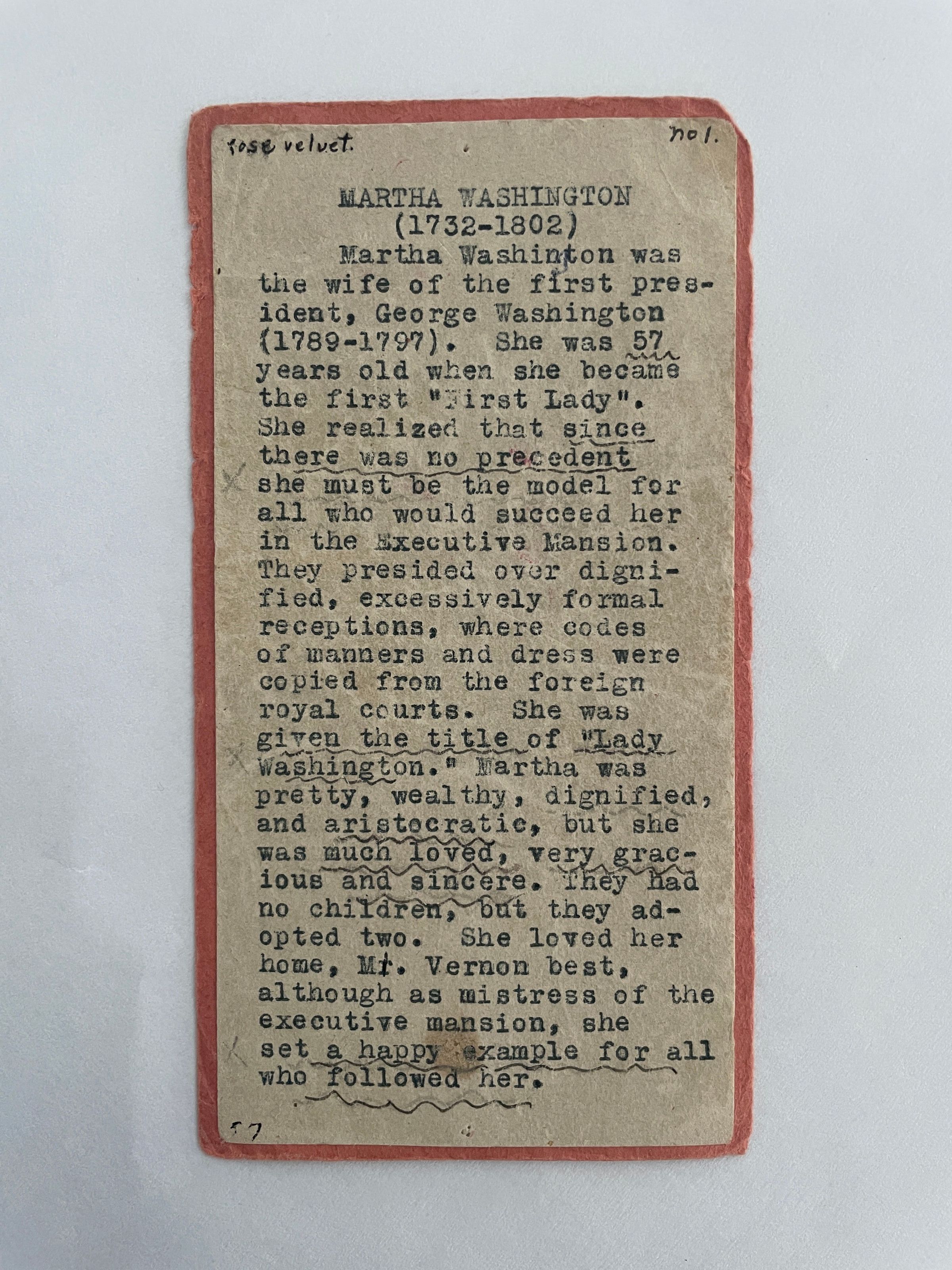 MARTHA WASHINGTONEntry/Object ID