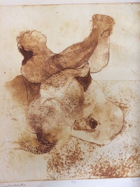 Brown-large woman on knees with clasped hands upraised.Collection