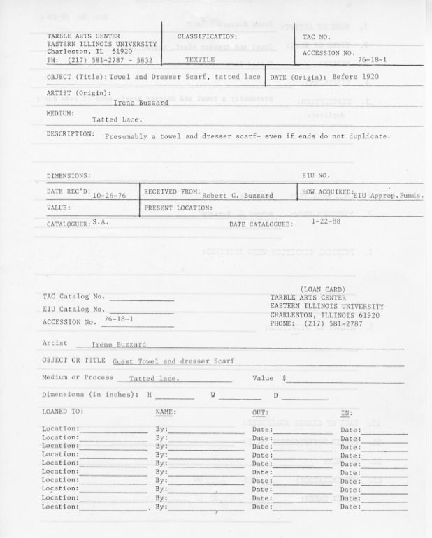 Towel/Dresser Scarf- Tatted LaceEntry/Object ID