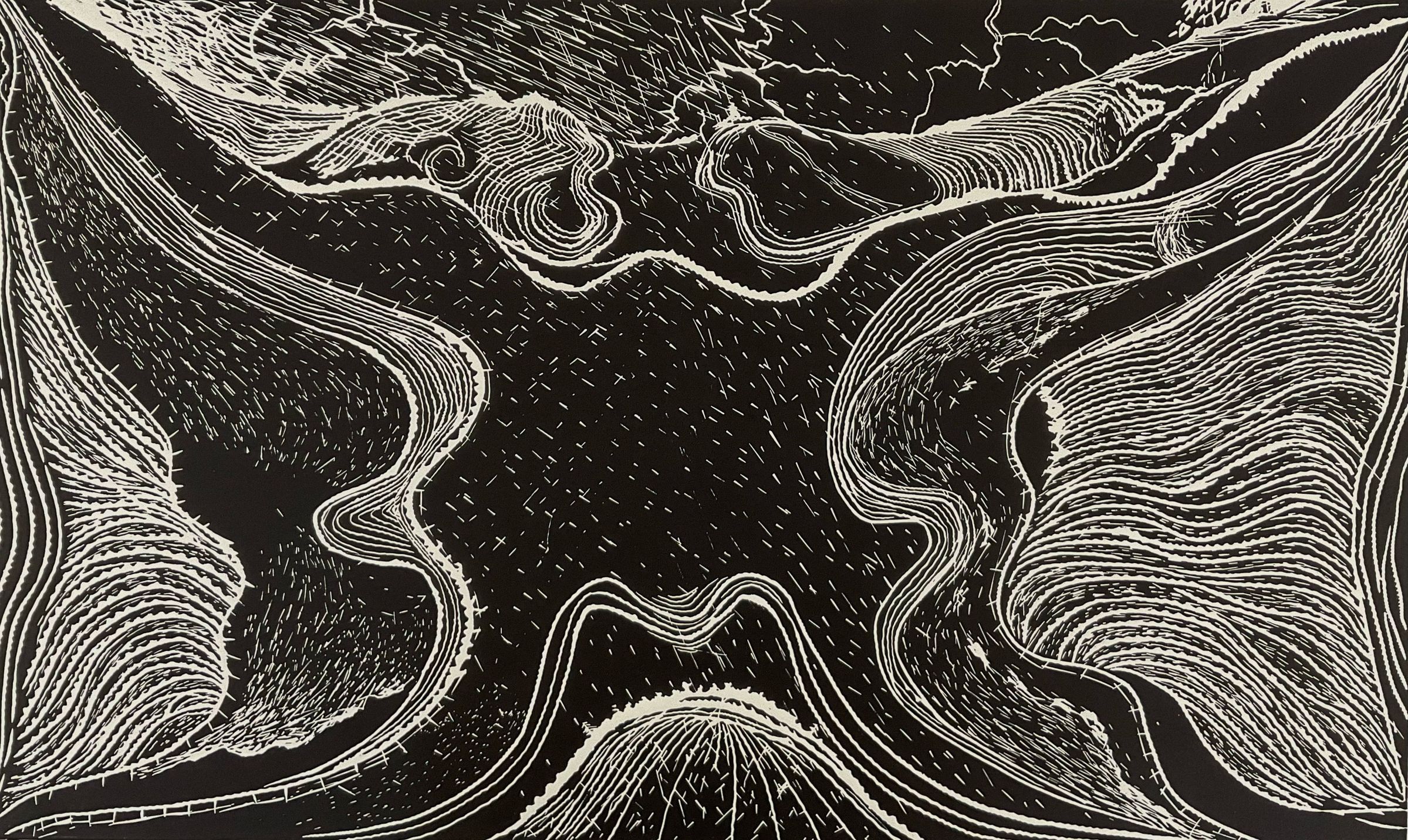 Abstract rain scene in black ink. From the suite: A Midwest Portfolio.Artwork Details