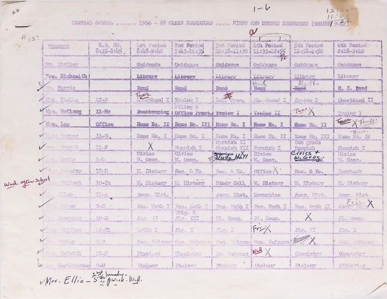 1966-1967, Central Junior High, Central High School, ScheduleDescription