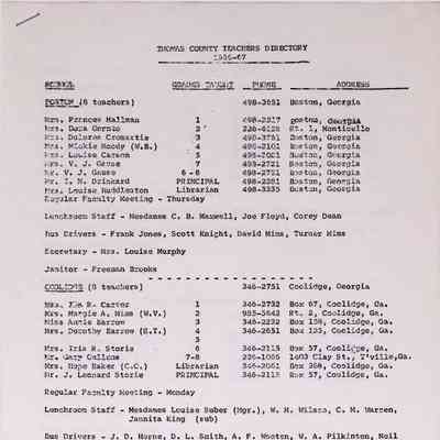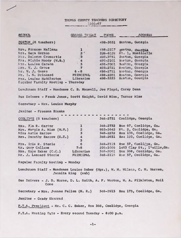 1966-1967, Central High School, Thomas County Schools, Boston High, North Boston Elementary School, P.T.A., Pavo Elementary, Pavo High, Meigs High, Ochlocknee Elementary, Ochlocknee High School, Central Junior HighCollection