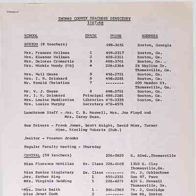 1967-1968 Thomas County Teachers DirectoryTags