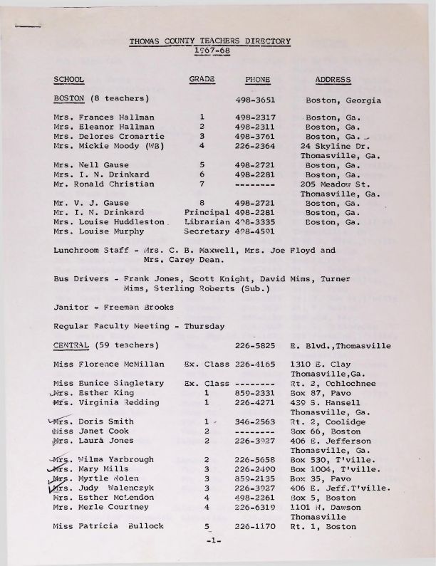 Thomas County Schools, Central High School, Magnolia High School, 1967-1968, Boston High, North Boston Elementary School, Coolidge Elementary, South Coolidge Elementary, Ochlocknee Elementary, Ochlocknee High School, Meigs High, New Union, Pavo Elementary, Pavo HighCollection