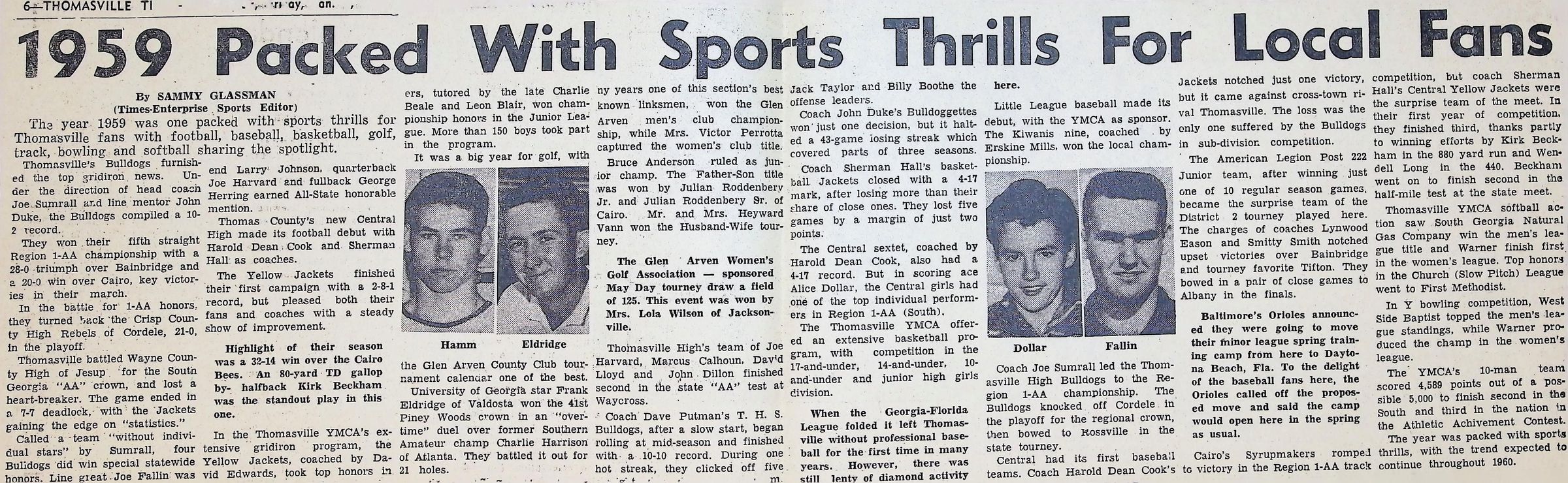 Newspaper Clipping "1959 Packed With Sports Thrills For Local Fans"Tags