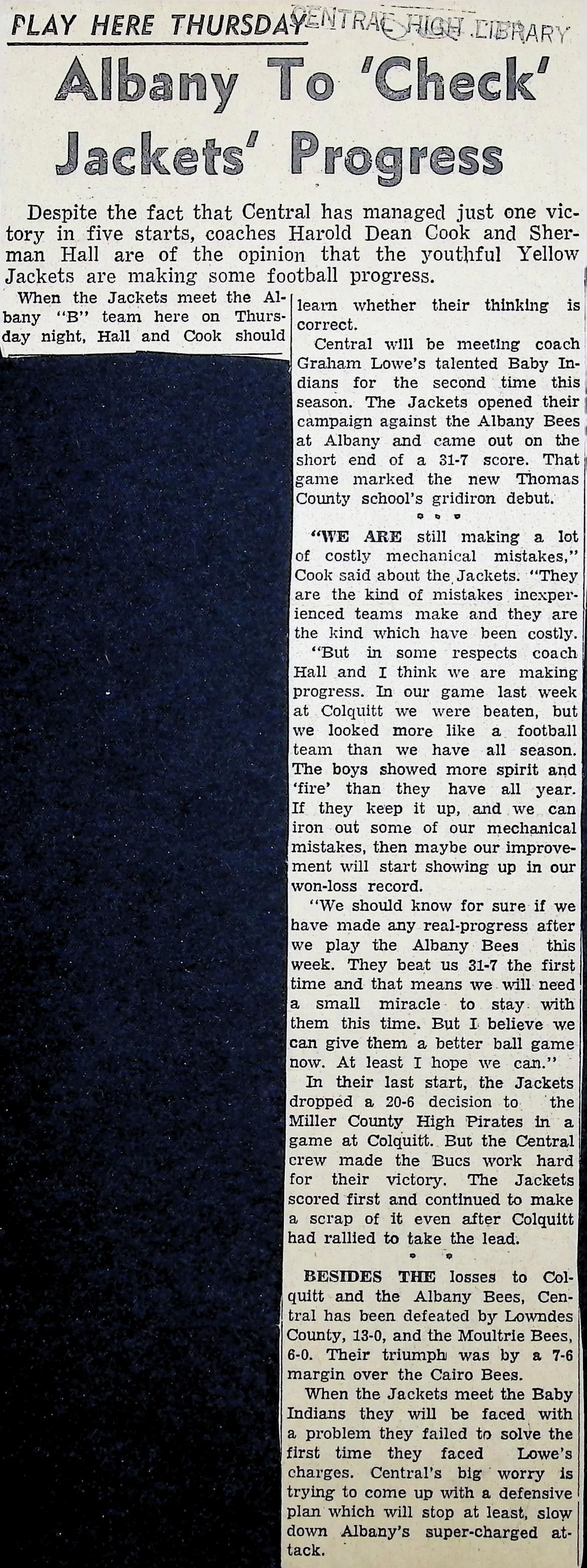 1959-1960, Football, Central High School, NewspaperSecondary Title