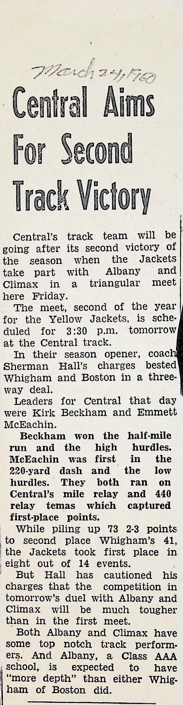 Newspaper Clipping "Central Aims For Second Track Victory"Tags