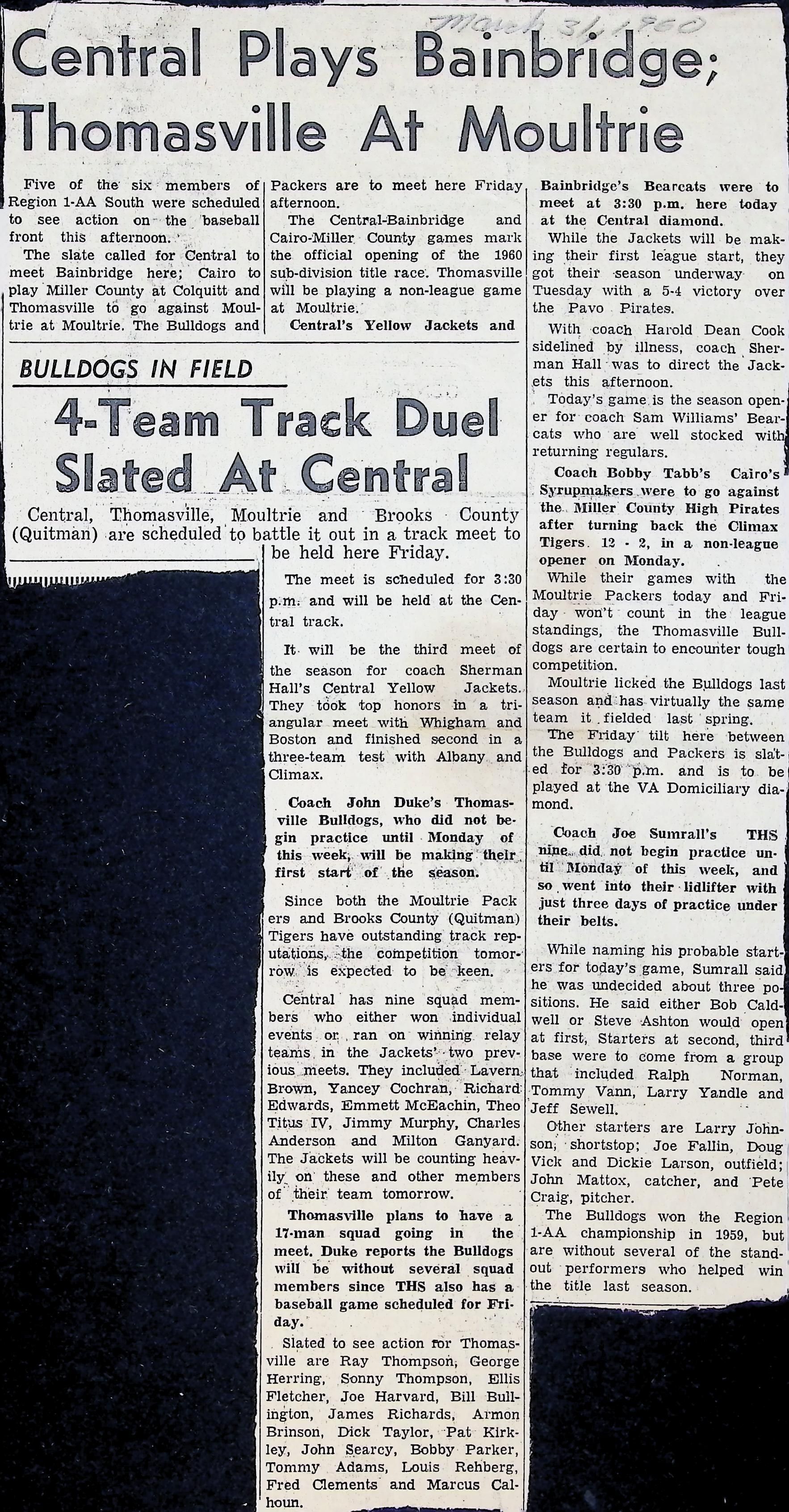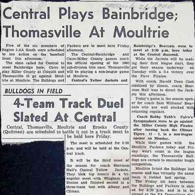 Newspaper Clipping "Central Plays Bainbridge; Thomasville At Moultrie"Tags