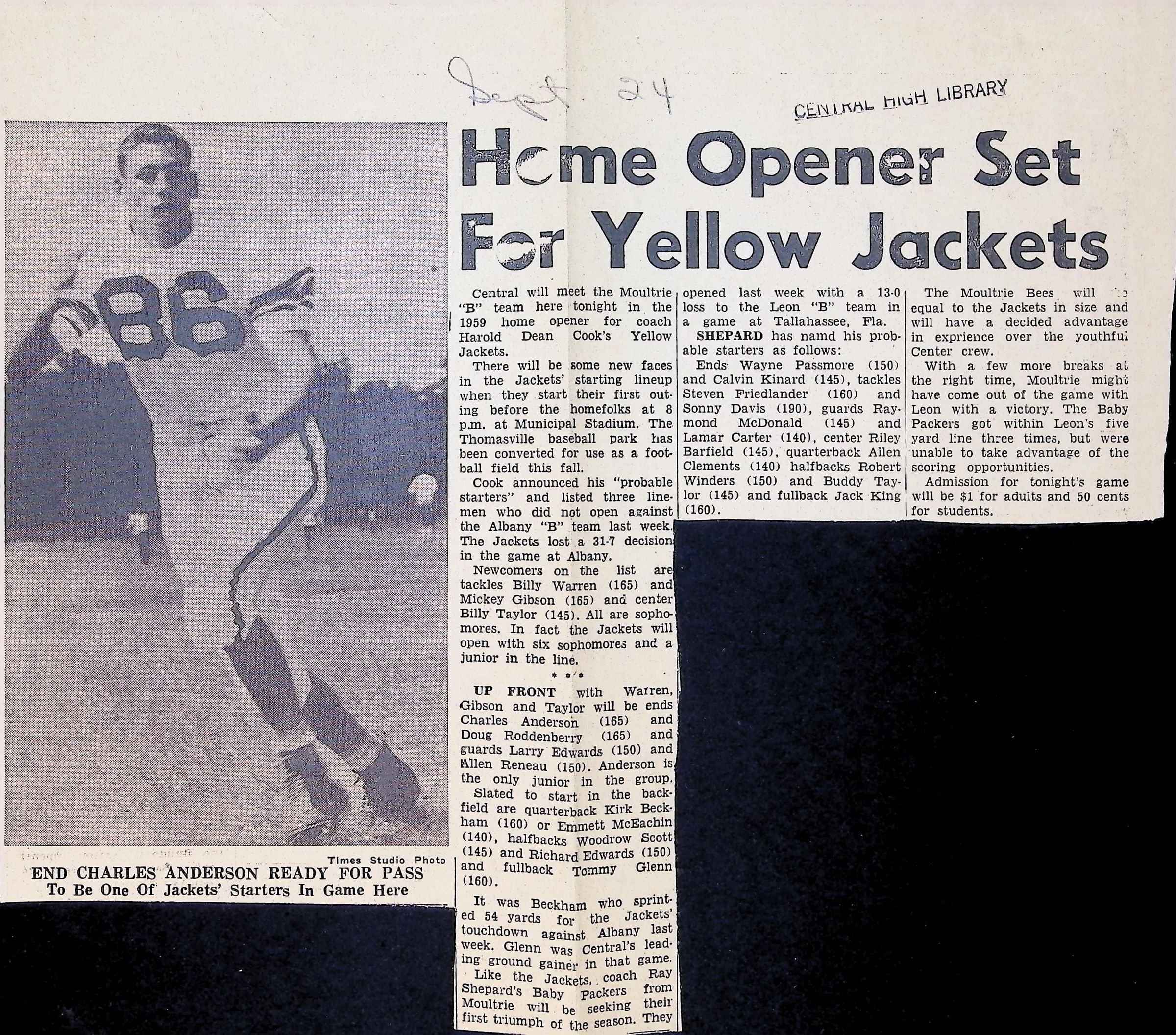Newspaper Clipping "Home Opener Set For Yellow Jackets"Tags