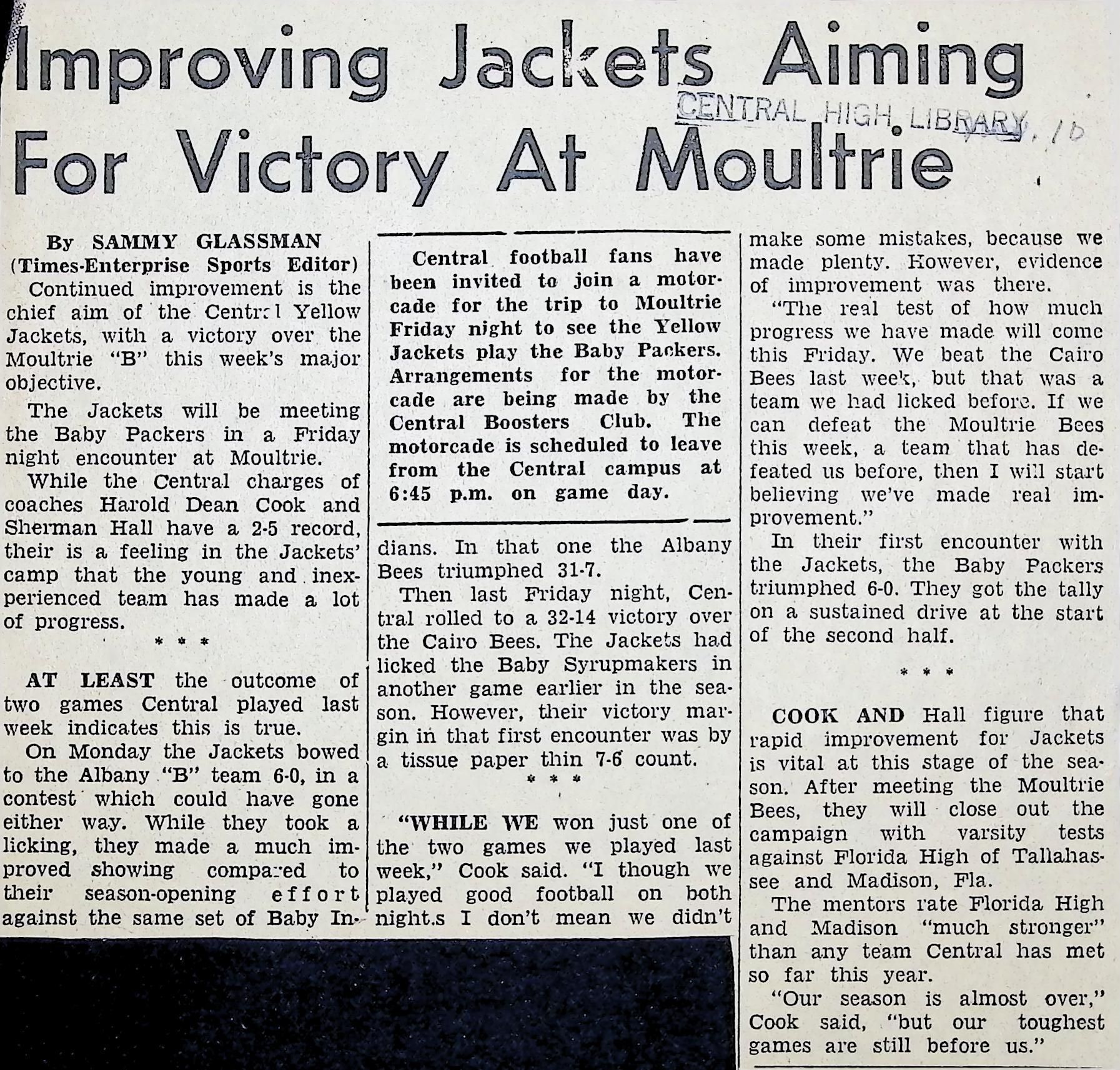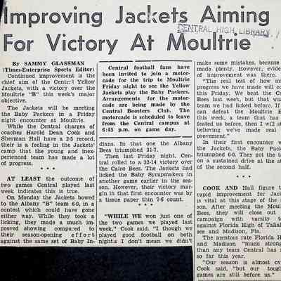 Newspaper Clipping "Improving Jackets Aiming For Victory At Moultrie"Tags