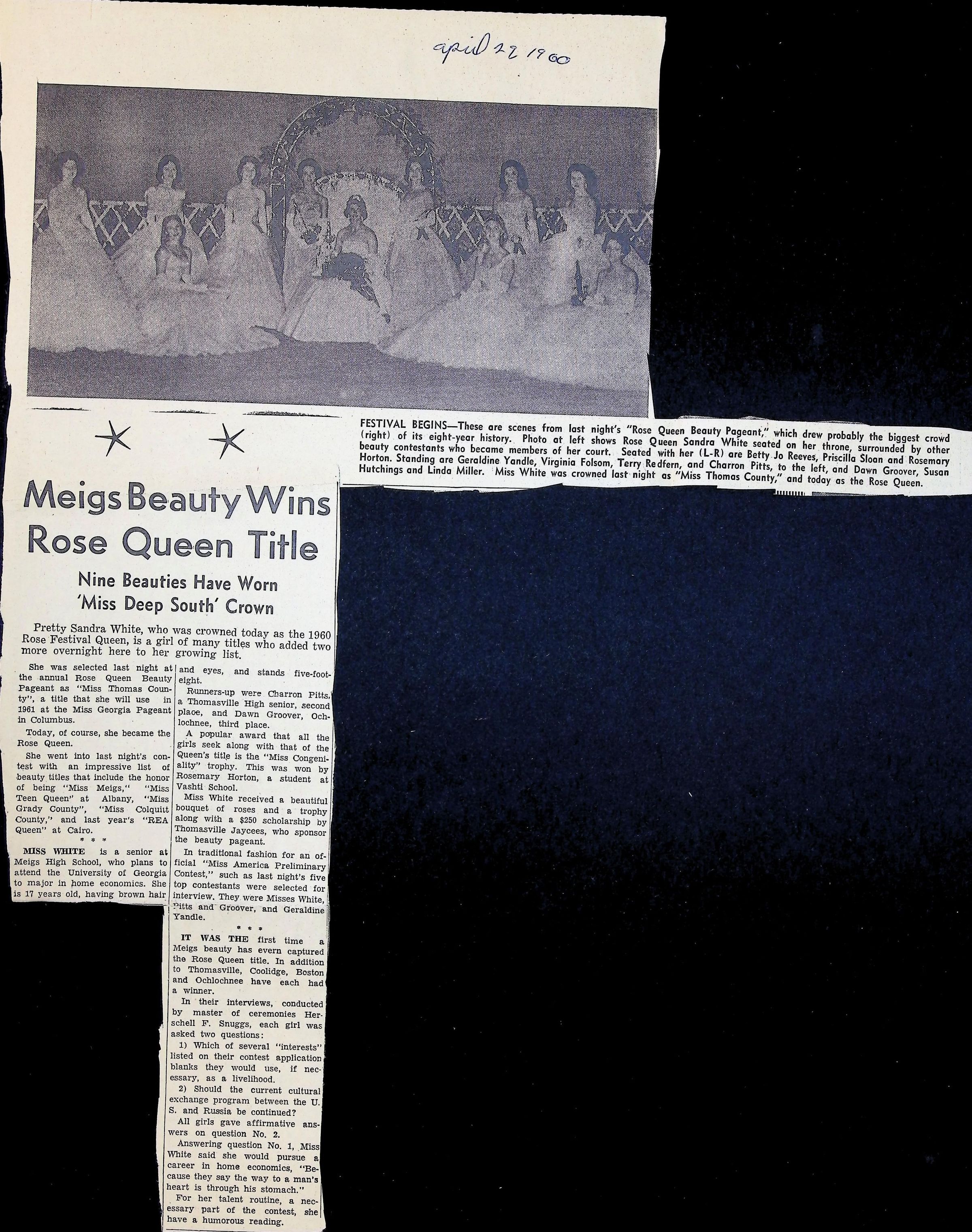 Newspaper Clipping "Meigs Beauty Wins Rose Queen Title"Tags