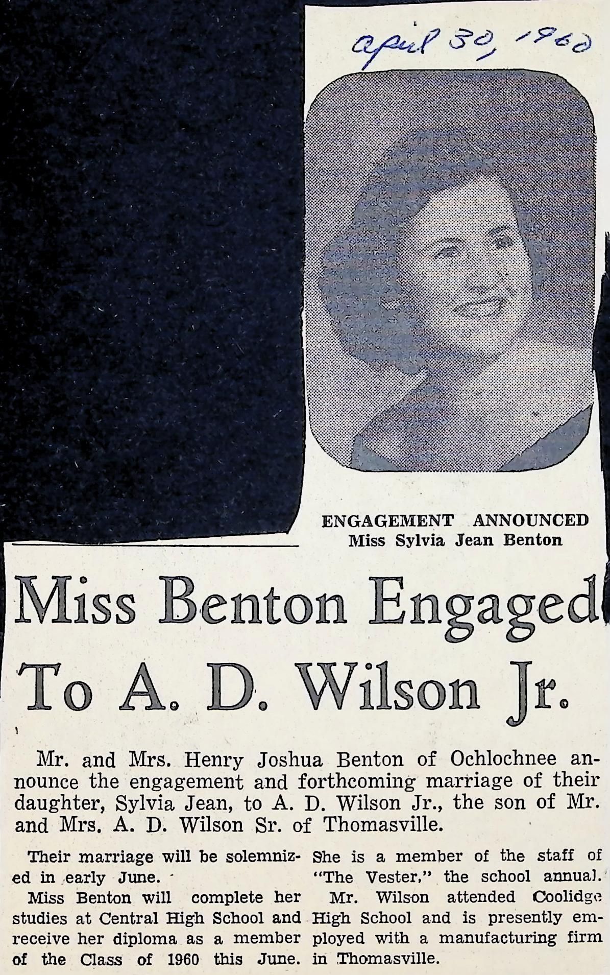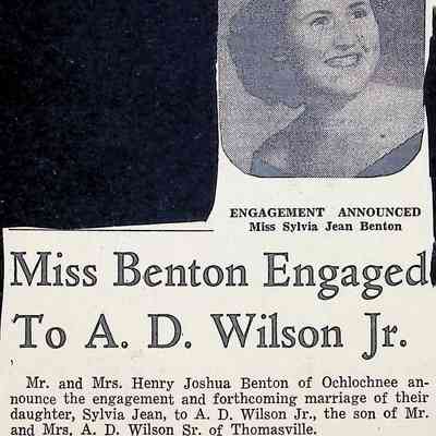 Newspaper Clipping "Miss Benton Engaged To A.D. Wilson Jr."Tags