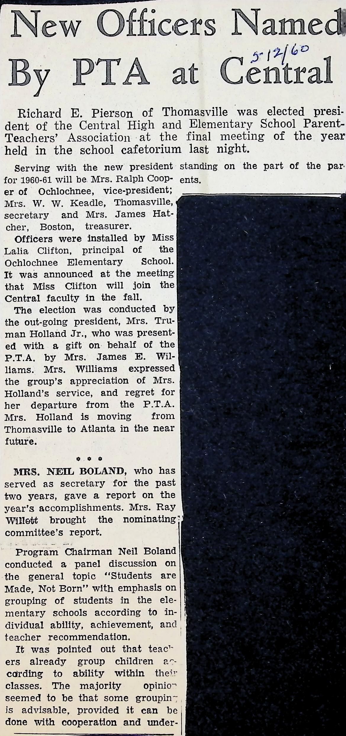 Newspaper Clipping "New Officers Named By PTA at Central"Tags