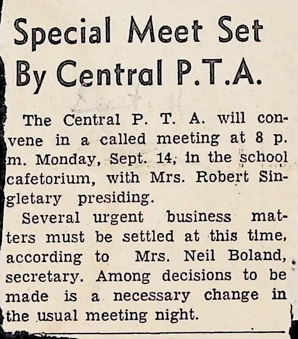 Newspaper Clipping "Special Meet Set By Central P.T.A."Tags