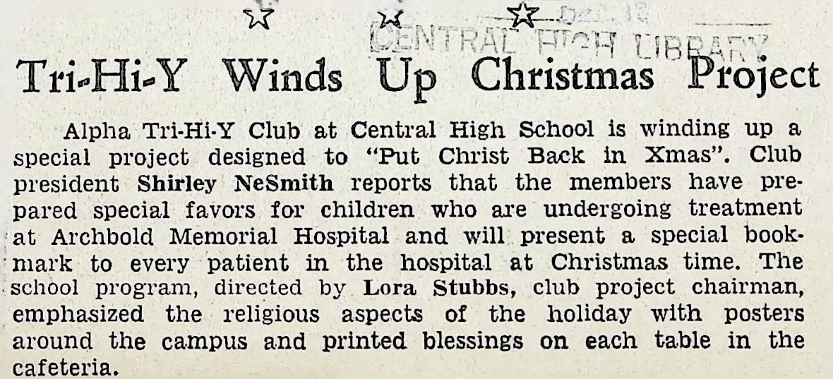 Newspaper Clipping "Tri-Hi-Y Winds Up Christmas Project"Tags