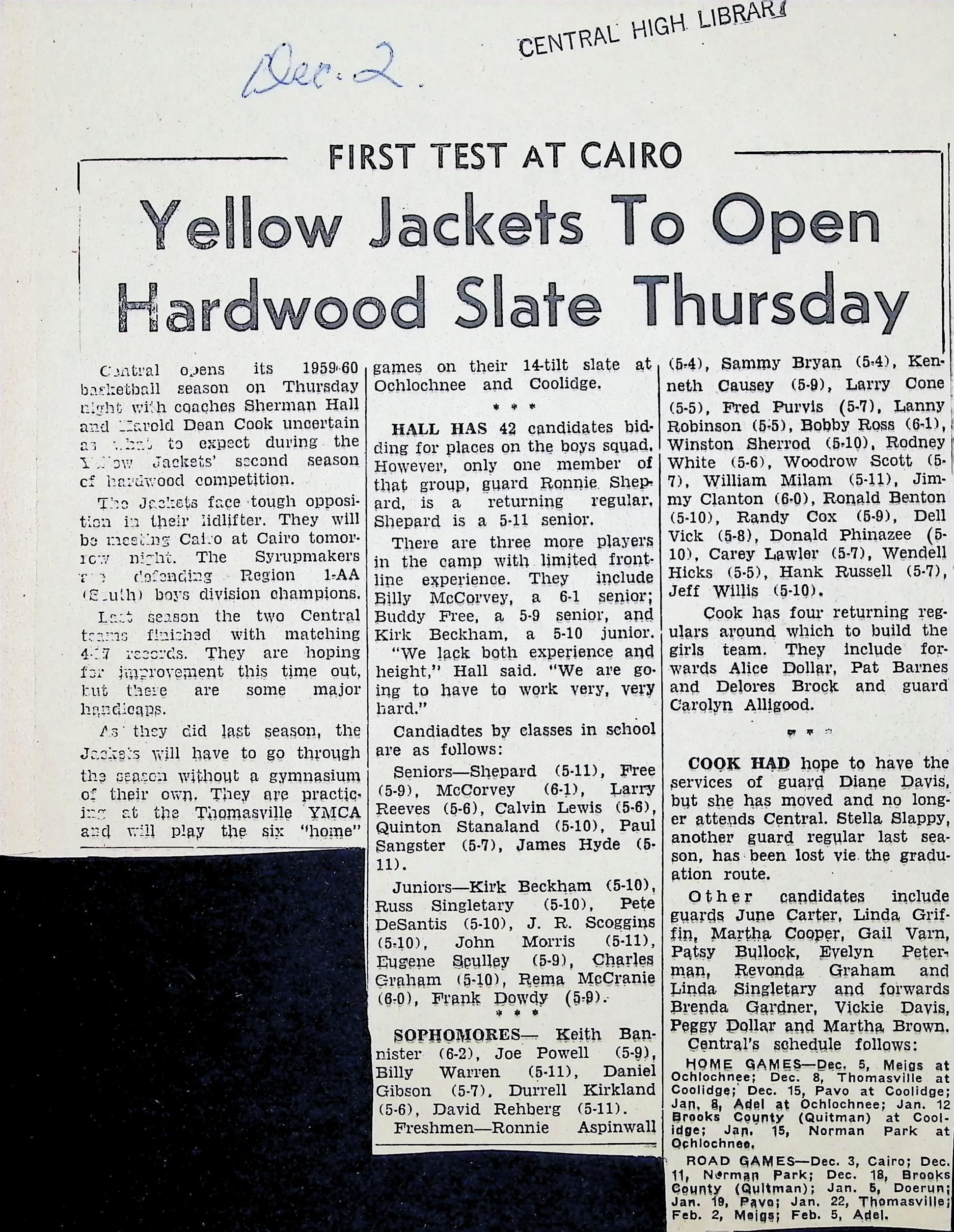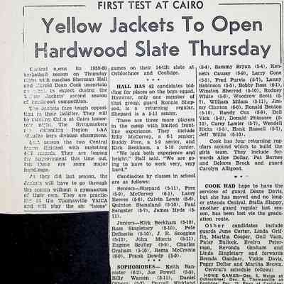 Newspaper Clipping "Yellow Jackets To Open Hardwood Slate Thursday"Tags