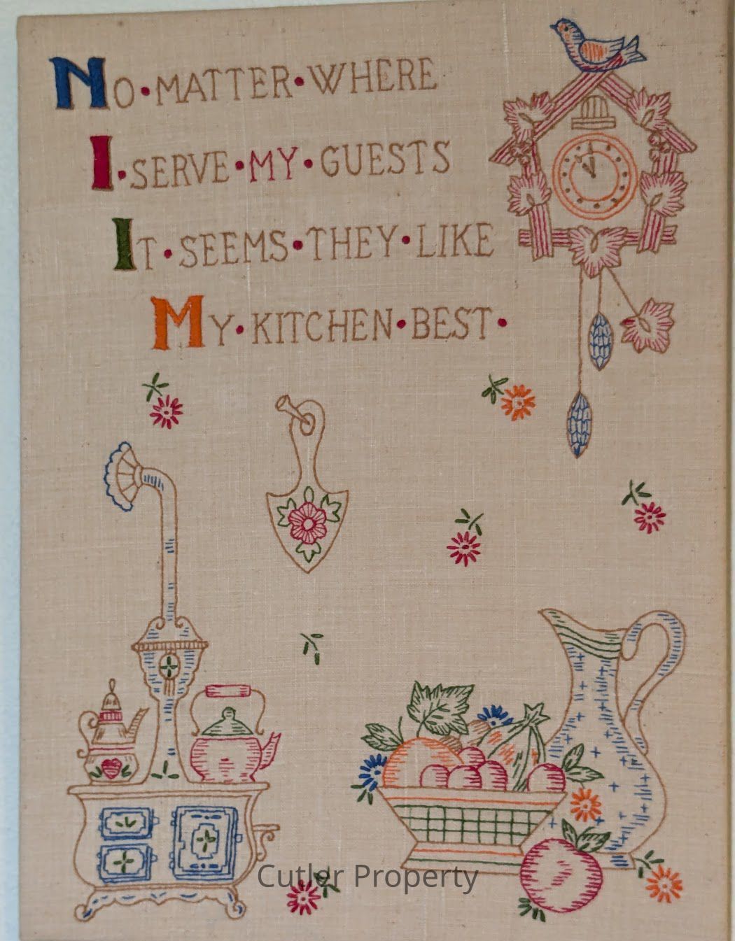 Vera did some embroidery. This is the only "art" piece she worked. It was a gift to her mother, Fanny Florence Isabel "Frazier"Hadley and at Fanny's death, the piece rturned to Vera.Created By