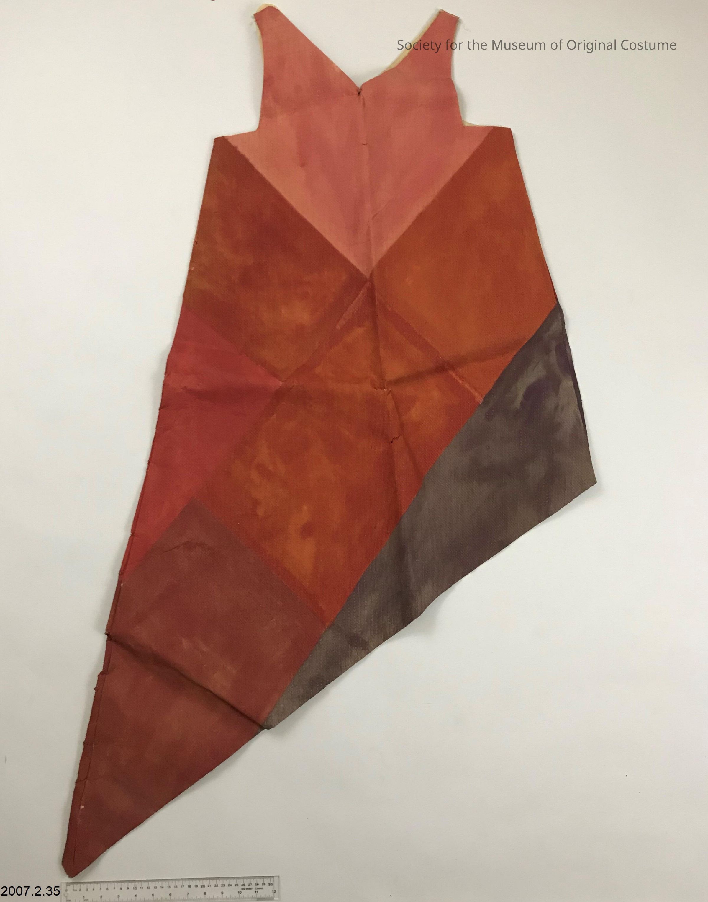 Asymmetrical paper canvas dress painted shades of red and purple.Acquisition