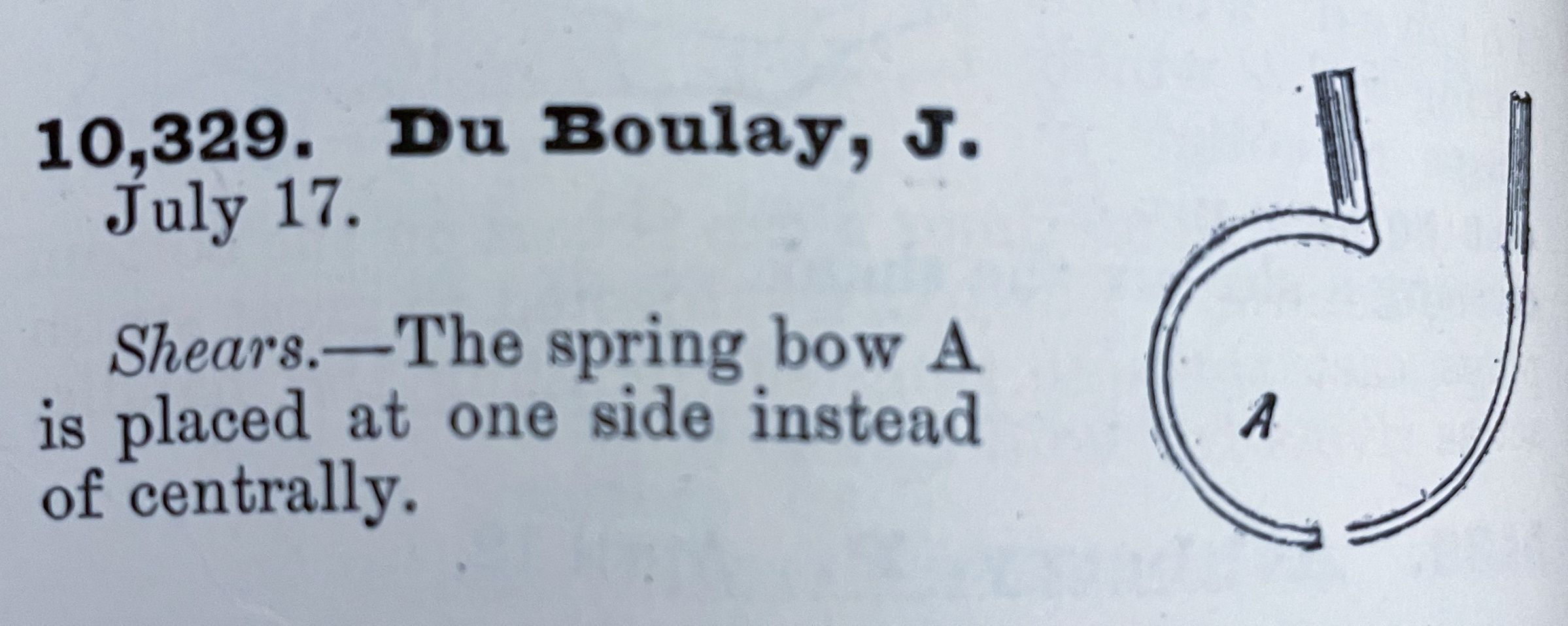 Shears. -- The spring bow A is placed at one side instead of centrally.Cataloged By
