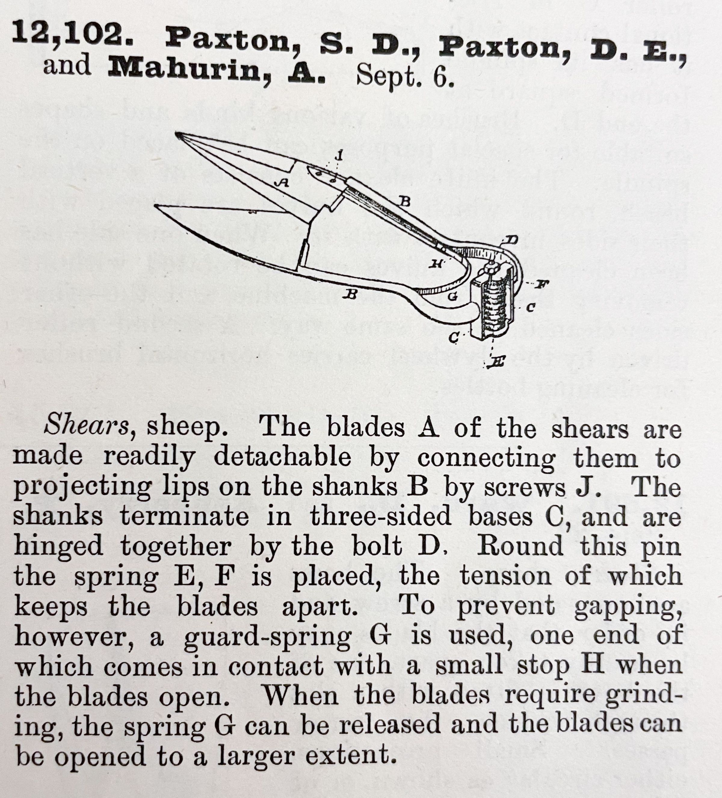 1800s, shears, sheep, british, paxton, mahurinDescription