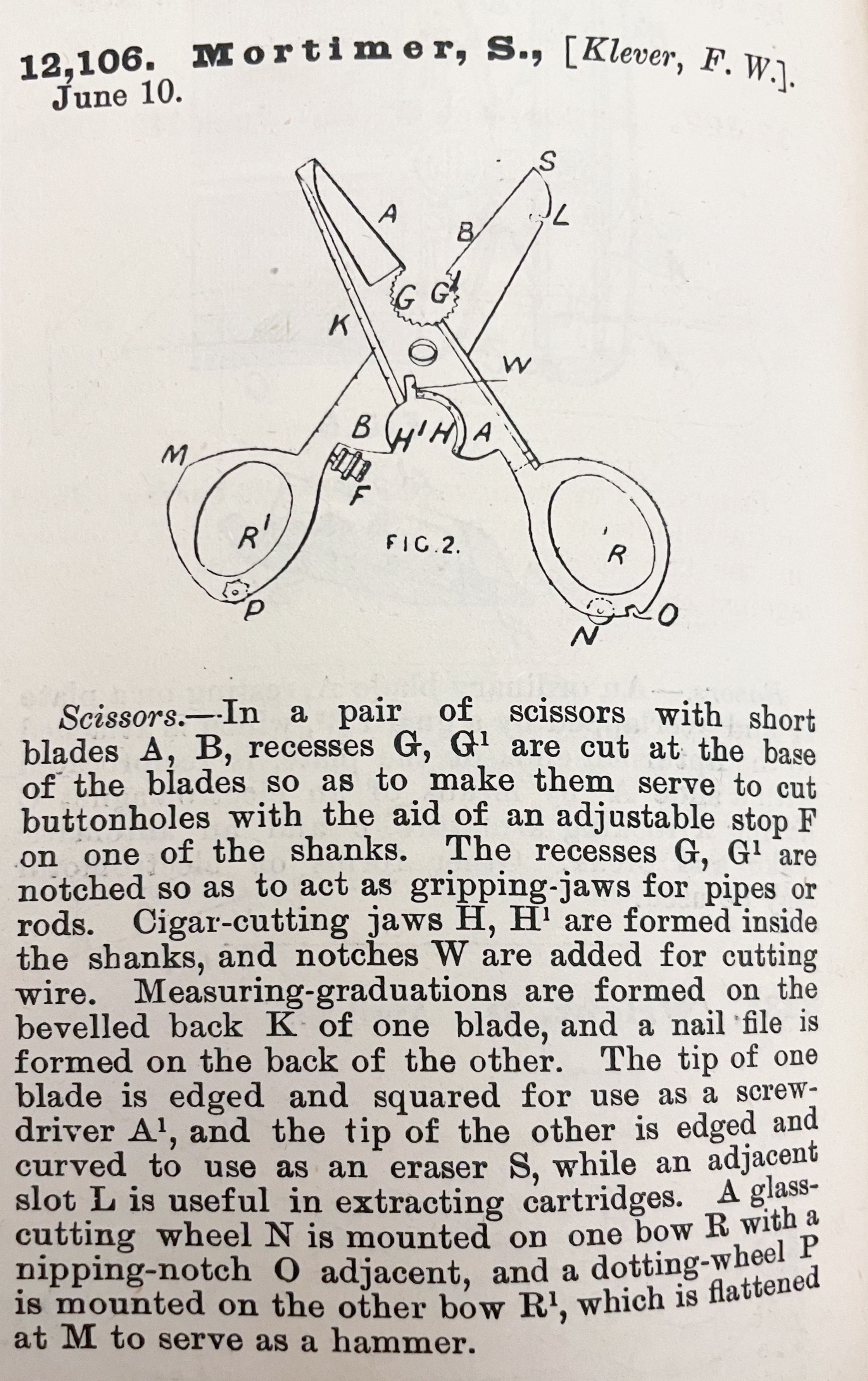 needs date, british, scissors, klever, mortimer, button holer, wire cutter, cigarDescription