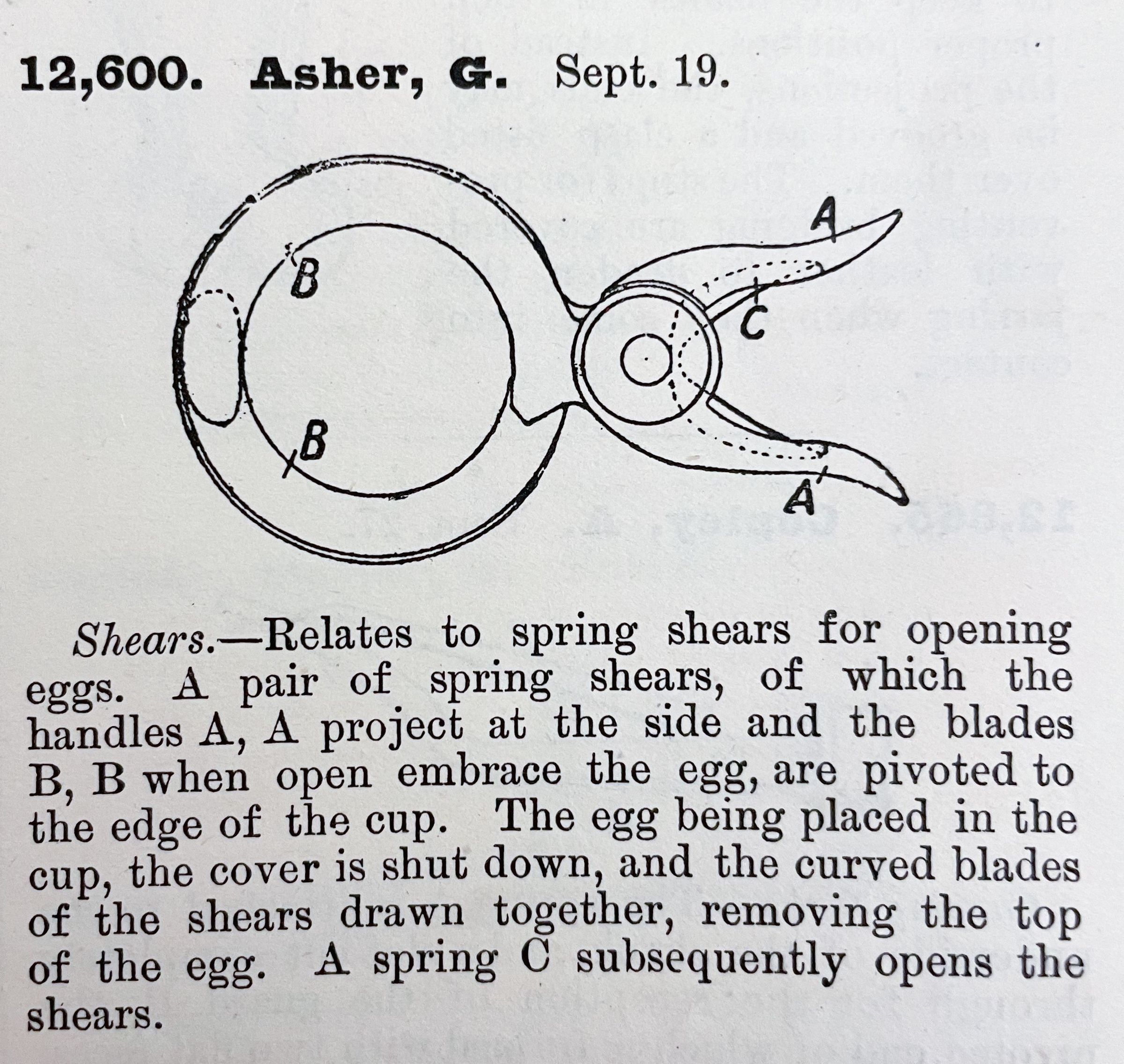 shears, 1800s, asher, egg, britishDescription