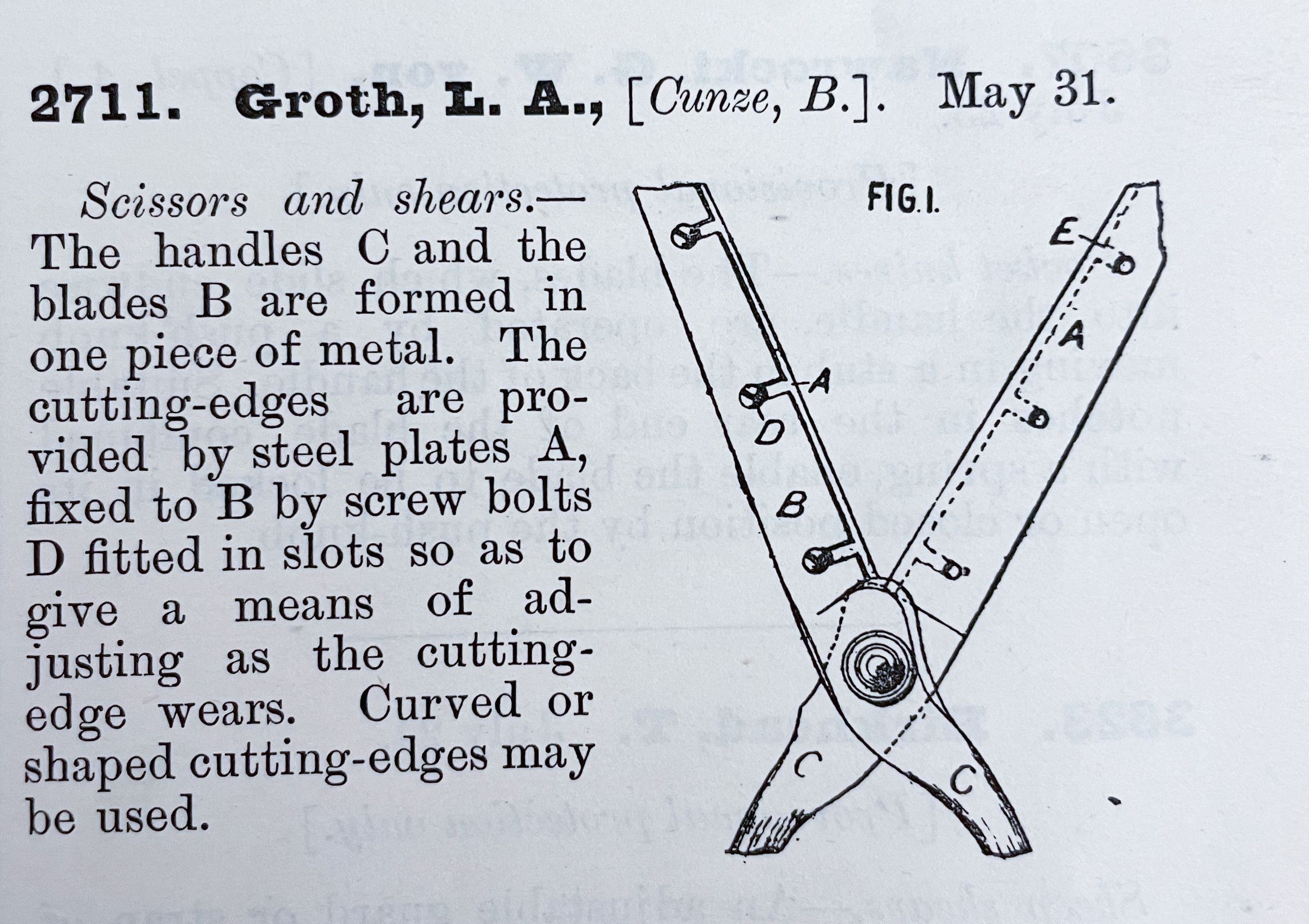 scissors, shears, 1800s, groth, cunze, britishDescription