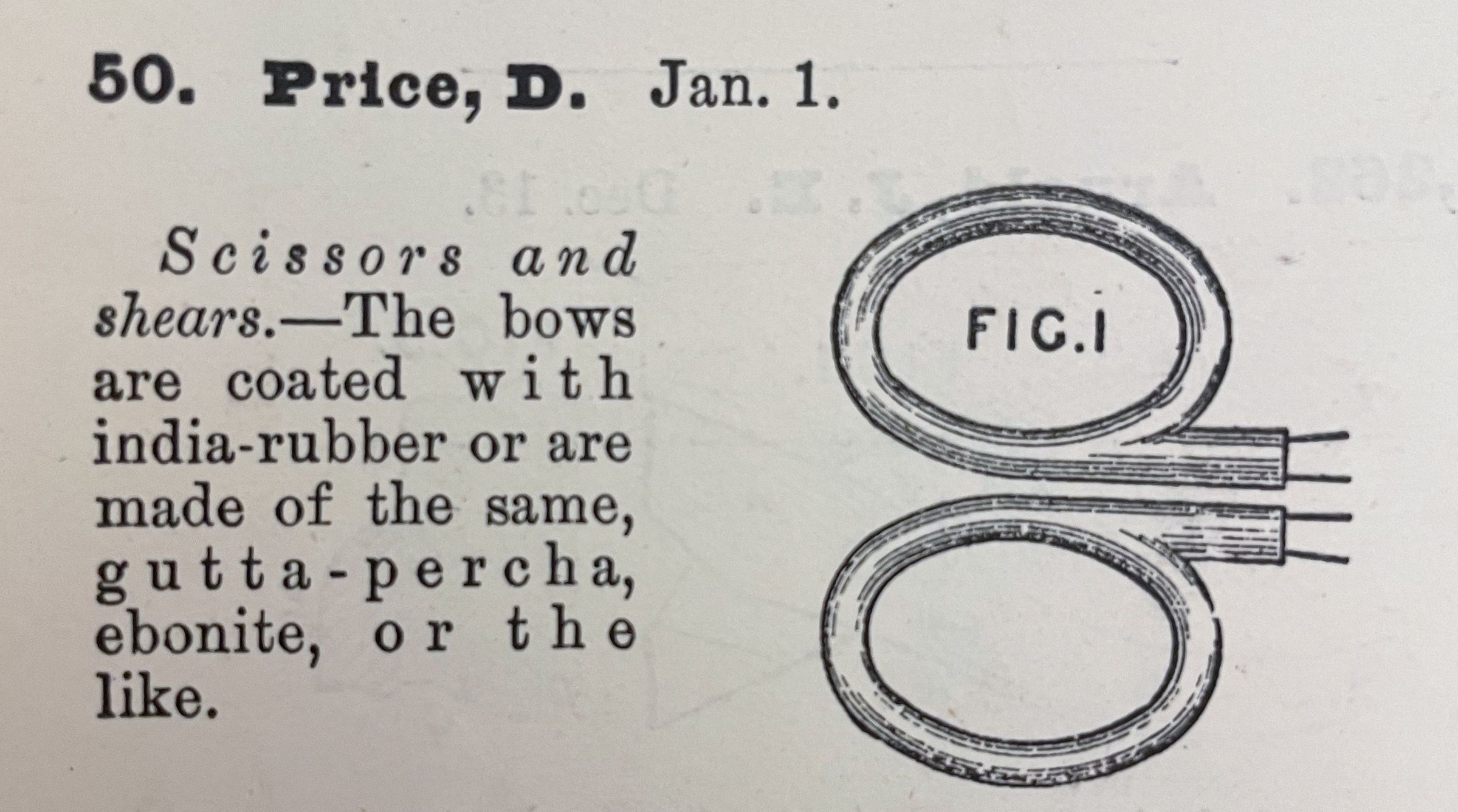 Scissors and shears. -- The bows are coated with India-rubber or are made of the same, gutta-percha, ebonite, or the like.Cataloged By