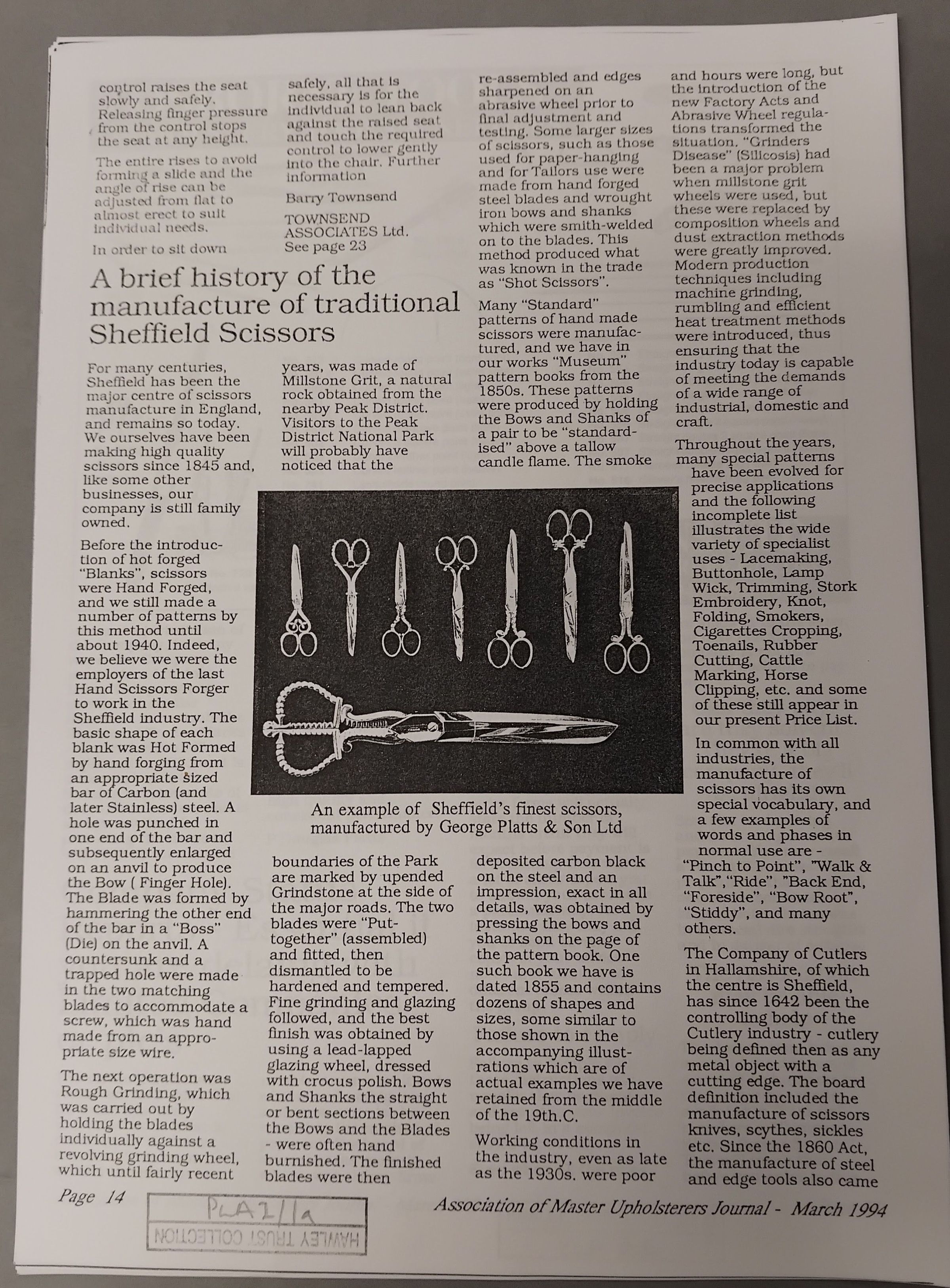 A brief history of the manufacture of traditional Sheffield ScissorsEntry/Object ID