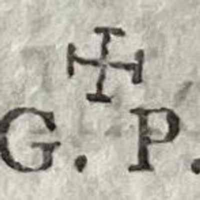 In Robinson's (1797) he is listed again at Little Sheffield, with the mark of a cross above the letters "G.P.", the letters this time having full stops after them.Category