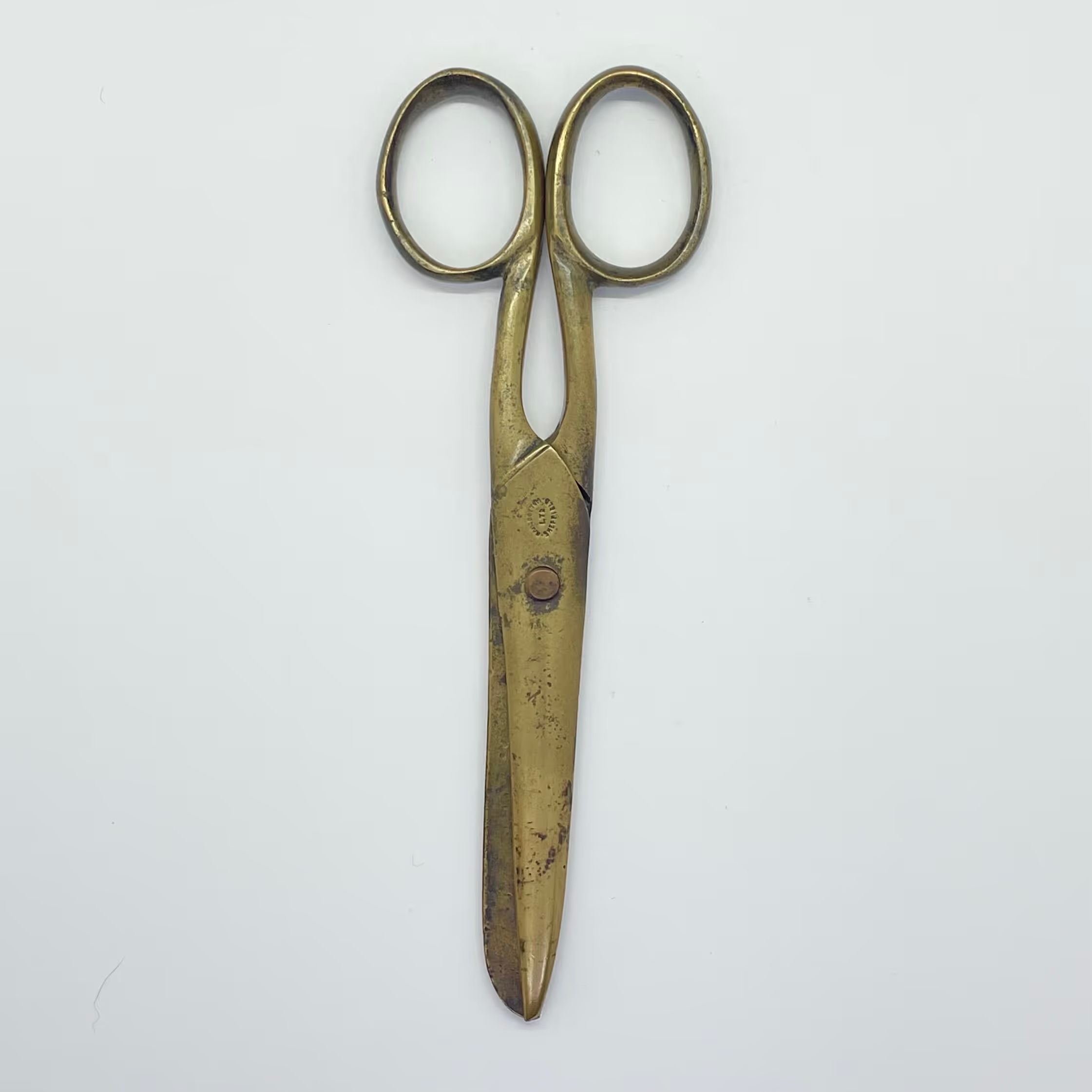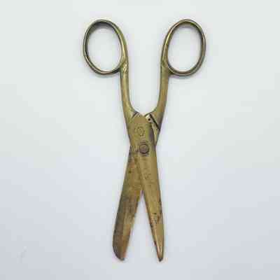 bronze, scissors, asymmetrical point, 1900s, tup, uneven bow, sheffieldDescription