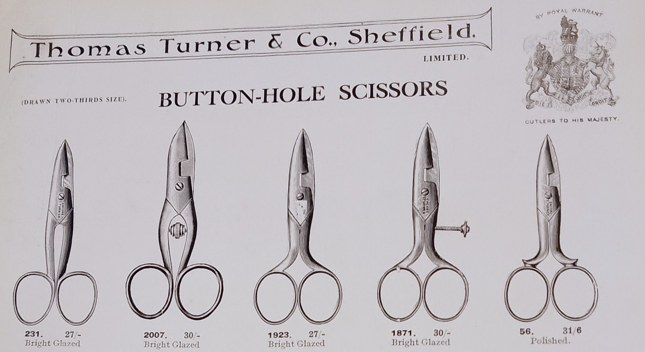 Buttonhole Scissors illustrated in the Thomas Turner & Co. catalogue of 1925.