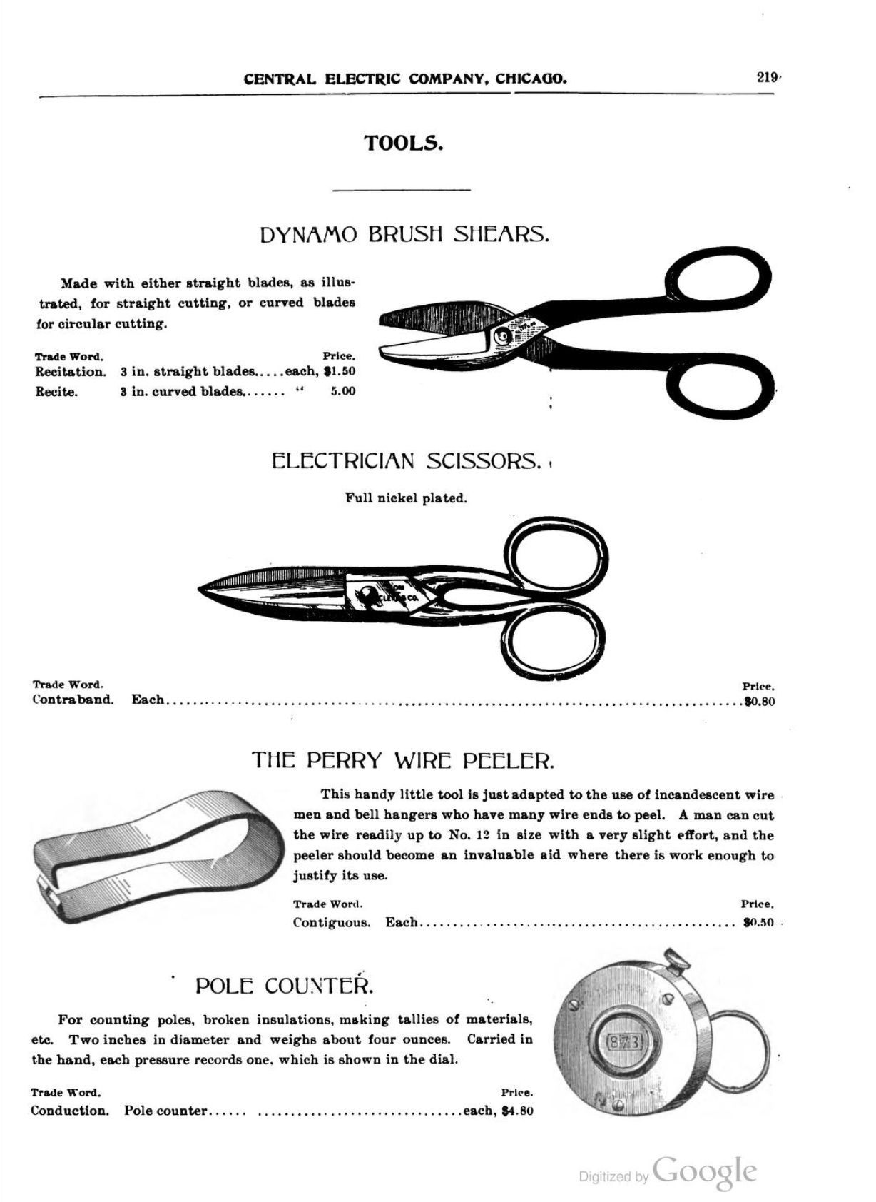 1800s, electrician, catalogue, america, scissors, shearsDescription