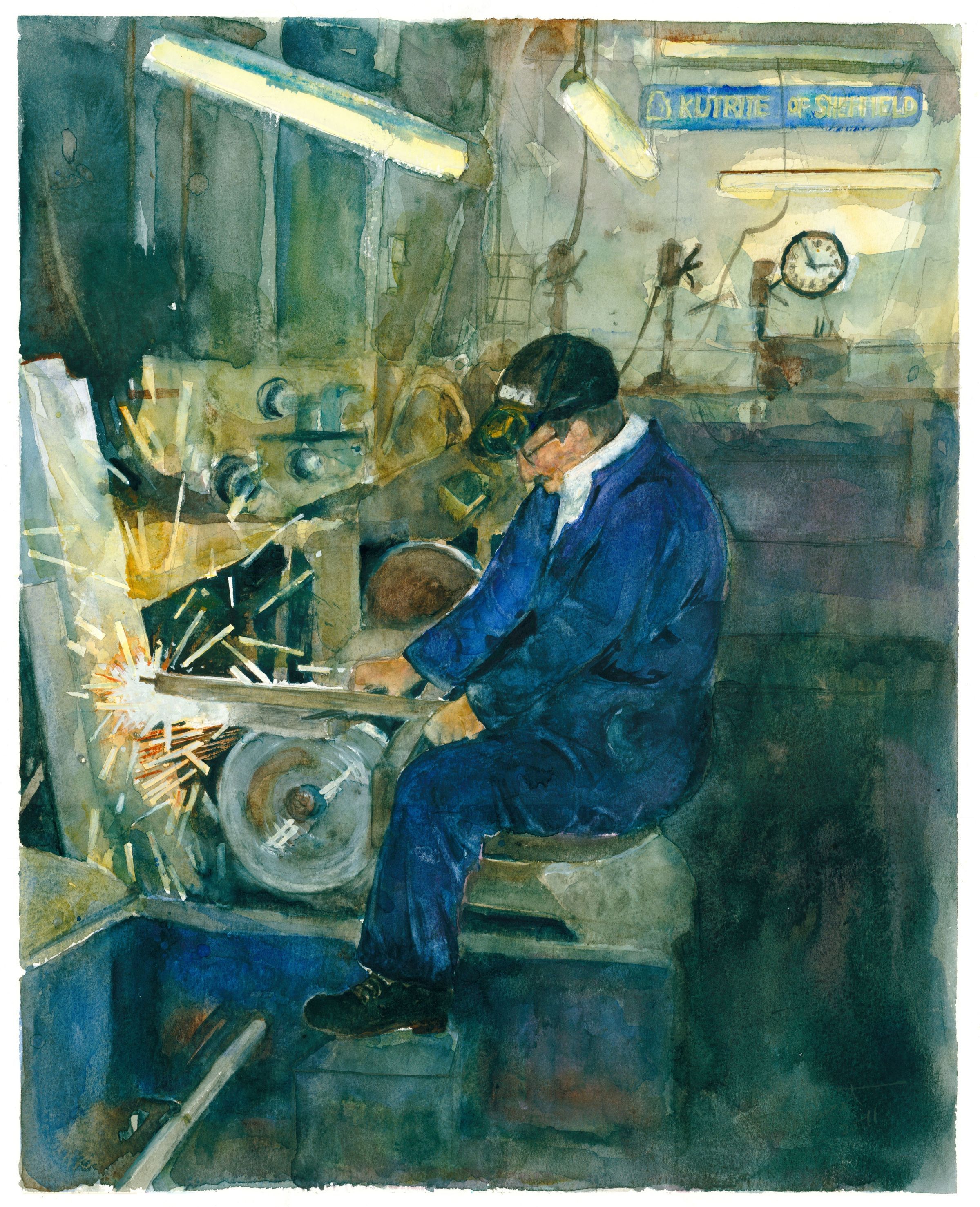 "I did these three paintings after visiting the old Ernest Wright scissor factory on an open day, back in 2012. They are watercolours, featuring Eric the Grinder, Cliff the Putter Togetherer and the man who ran the furnace."Created By