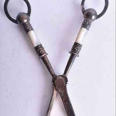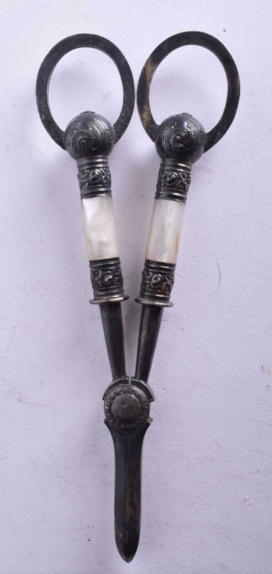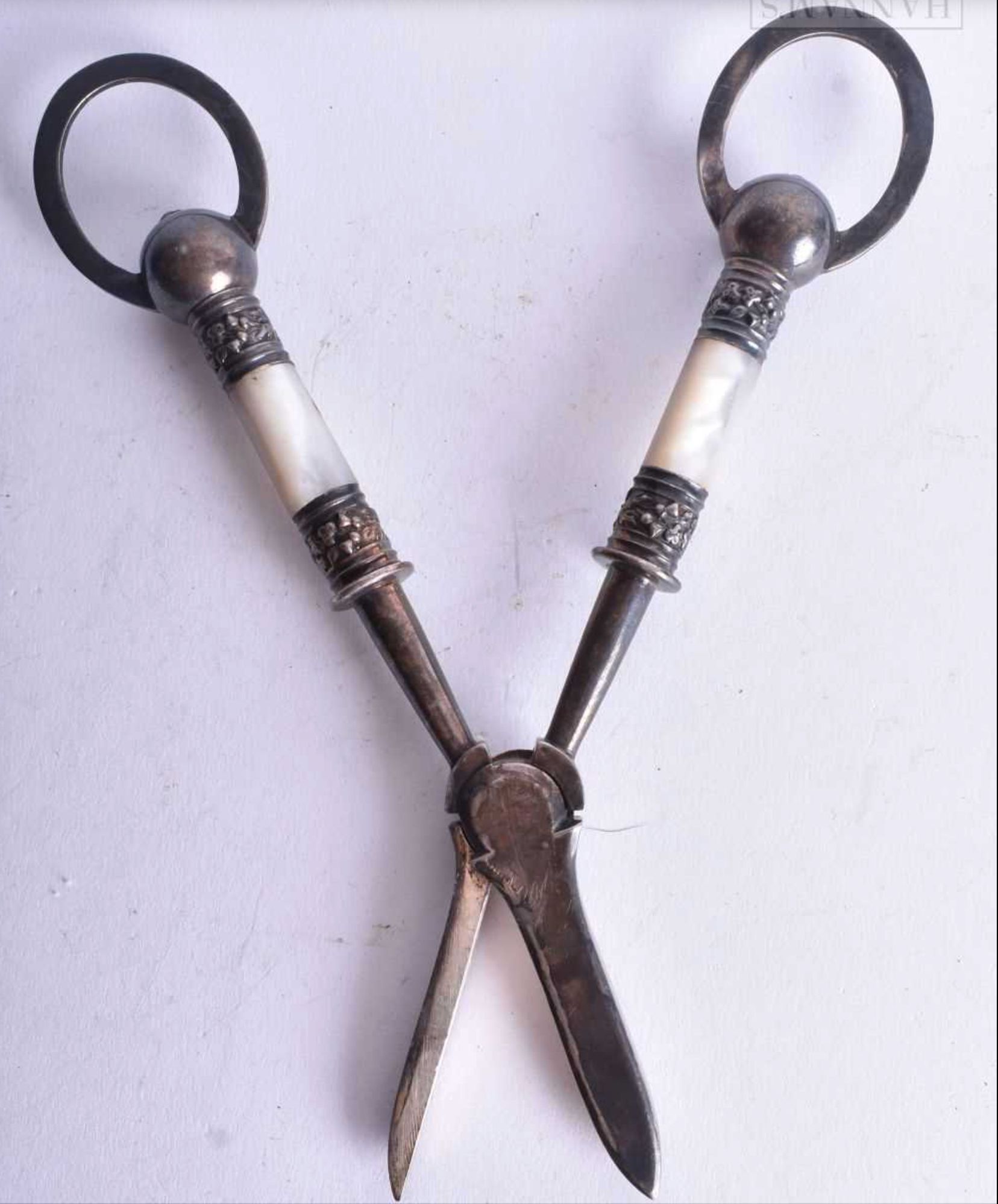 A pair of Grape Scissors with Mother of Pearl inset detail on the shanks.
