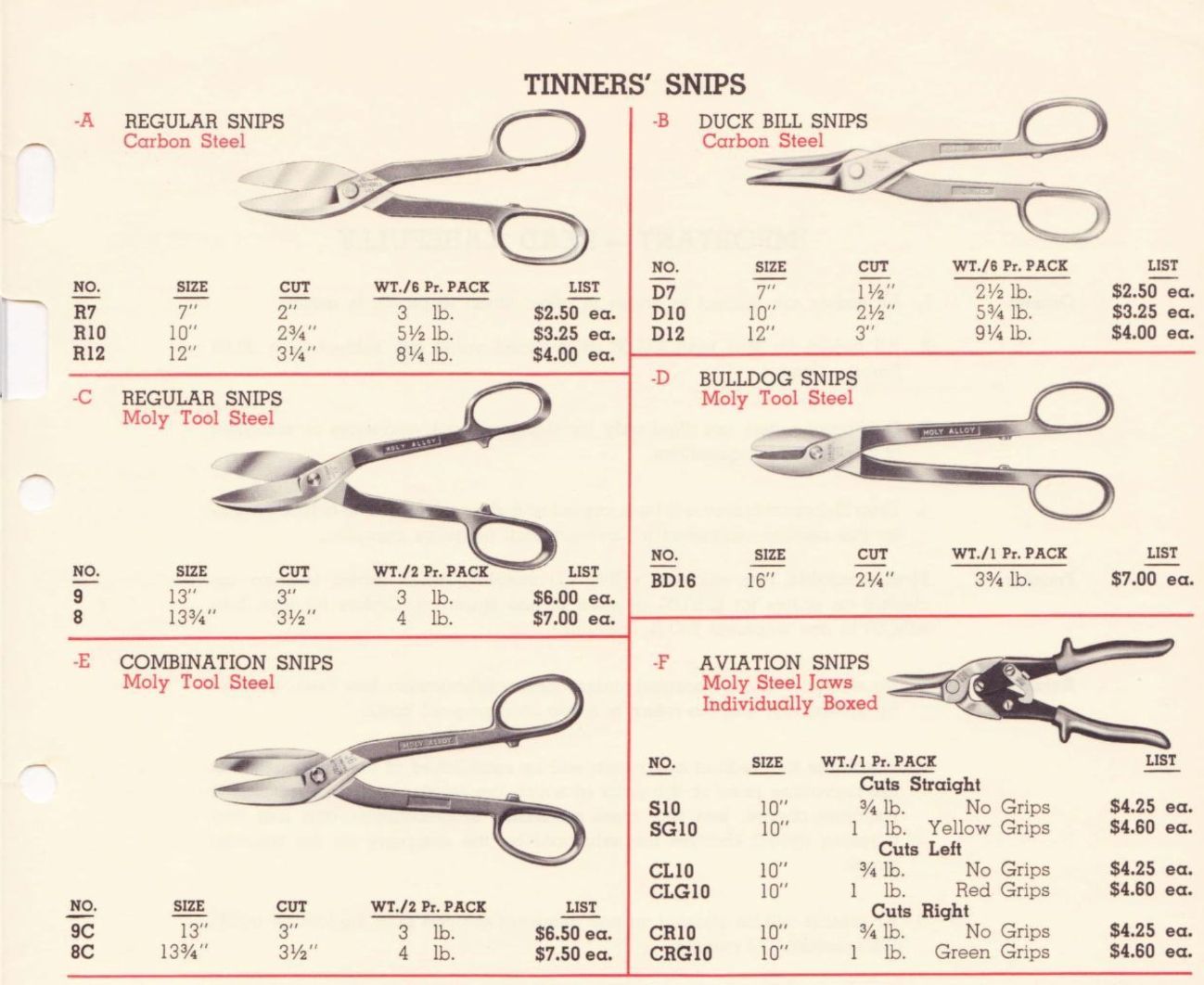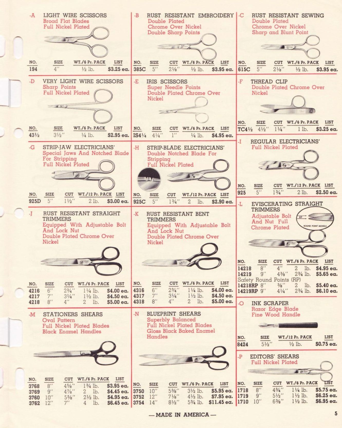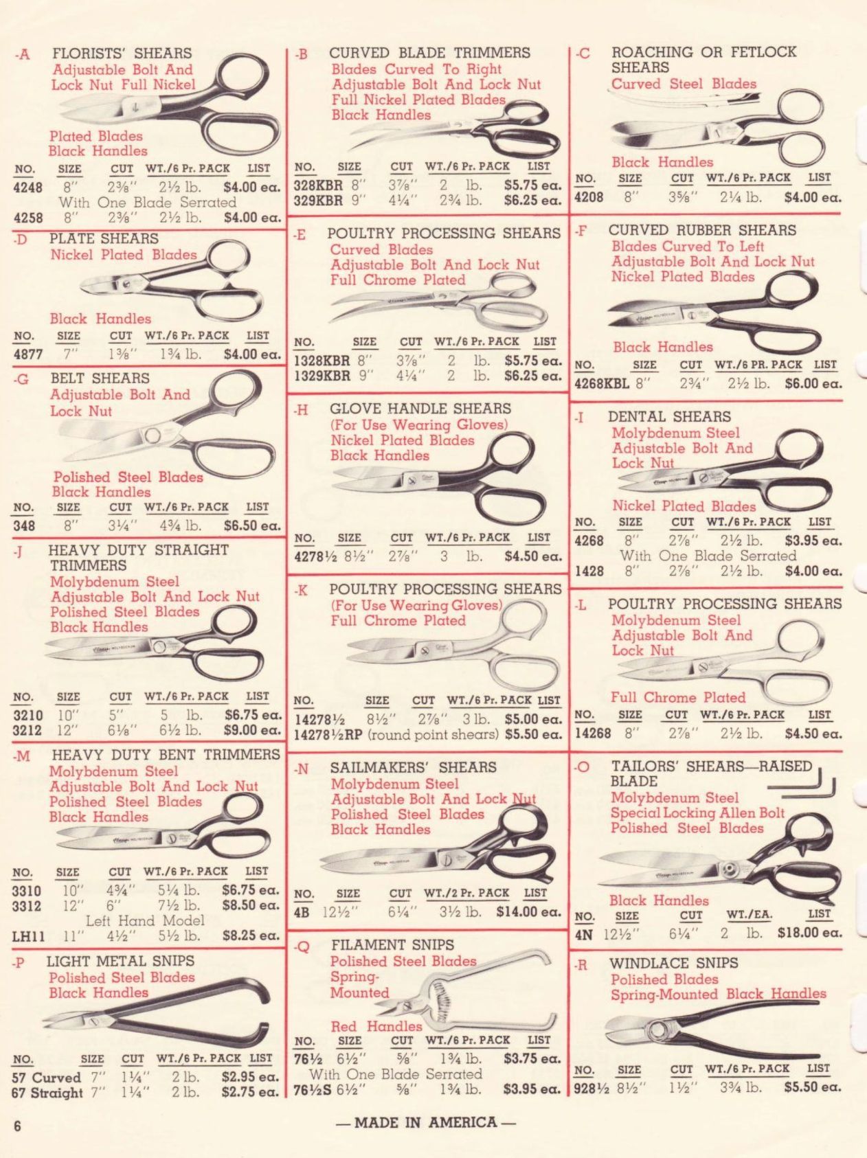 Clauss were American manufacturers of scissors, shears, and snips. Their 1962 Catalogue of Hot Hammer Forged products illustrates a range of items, including: