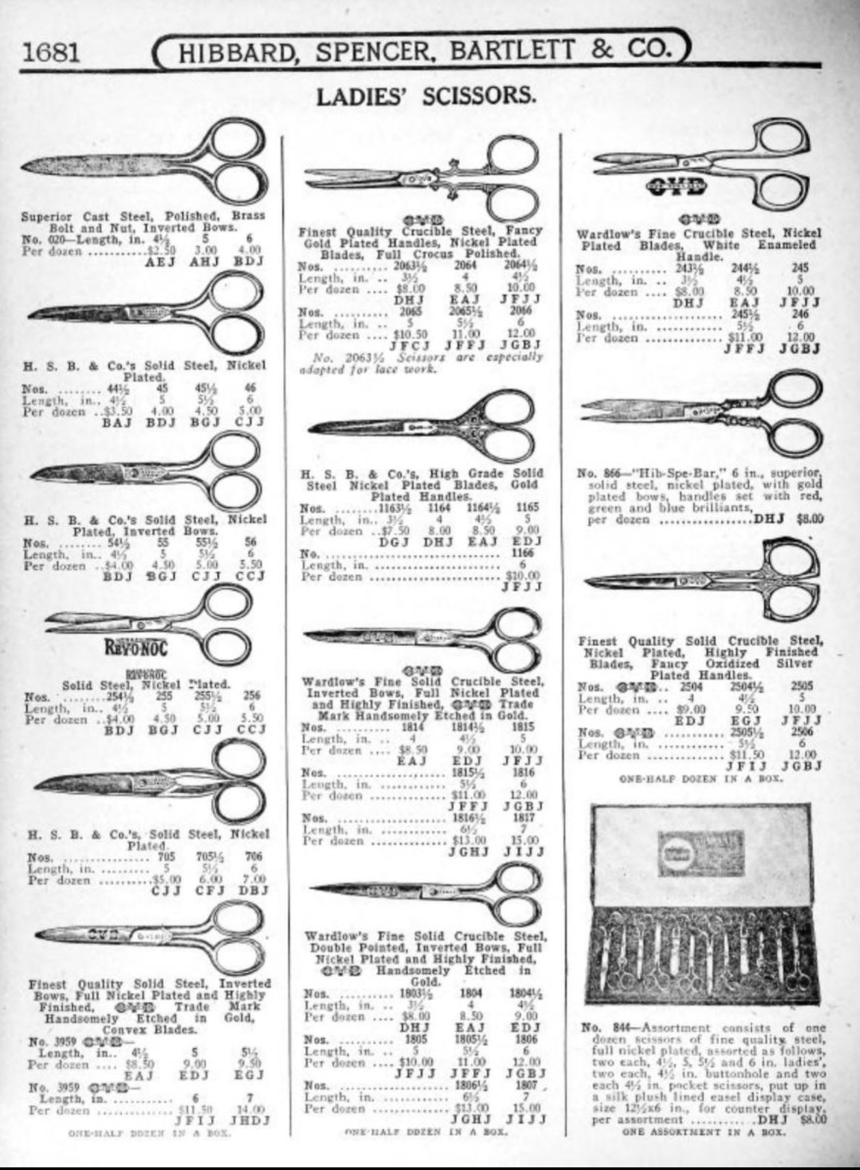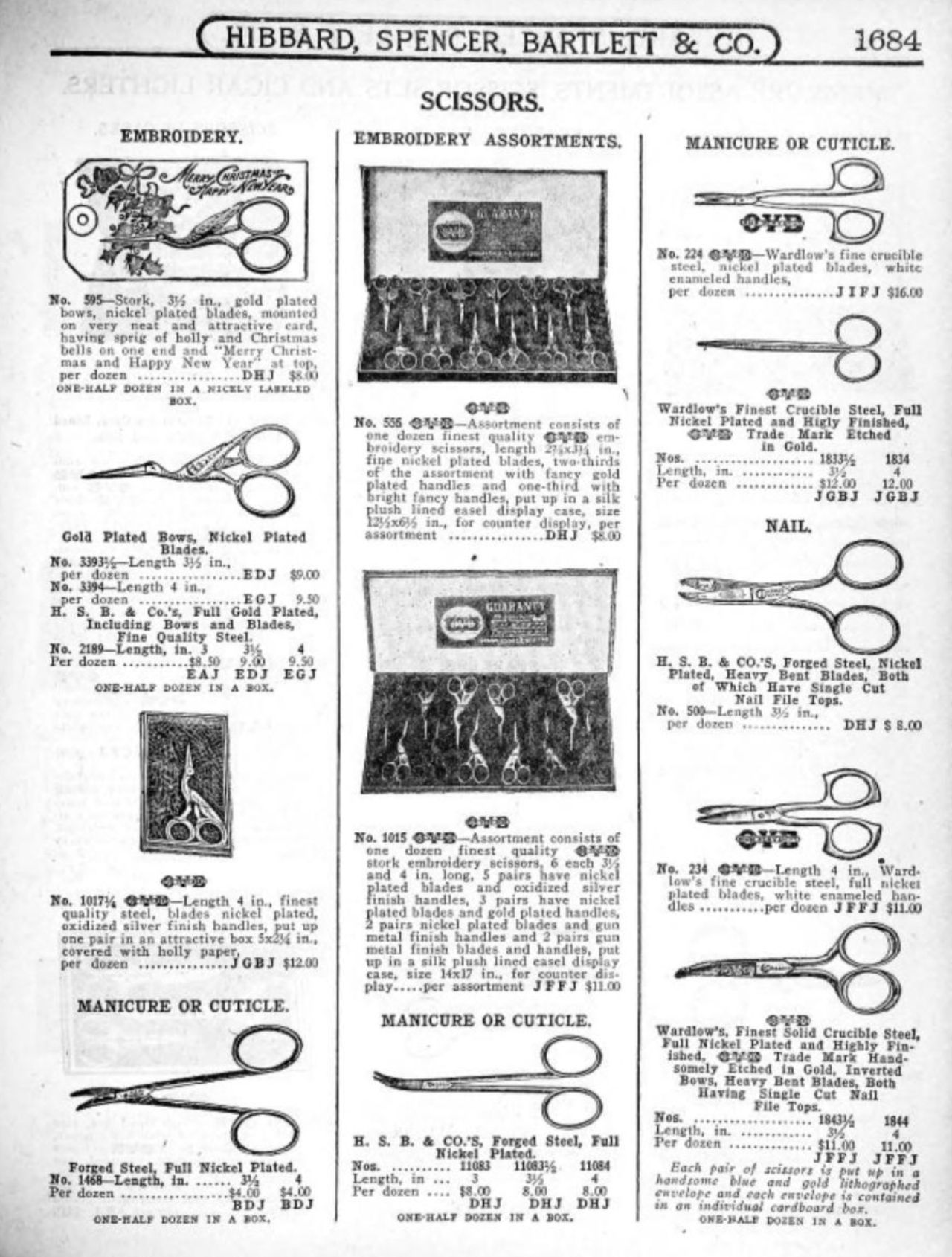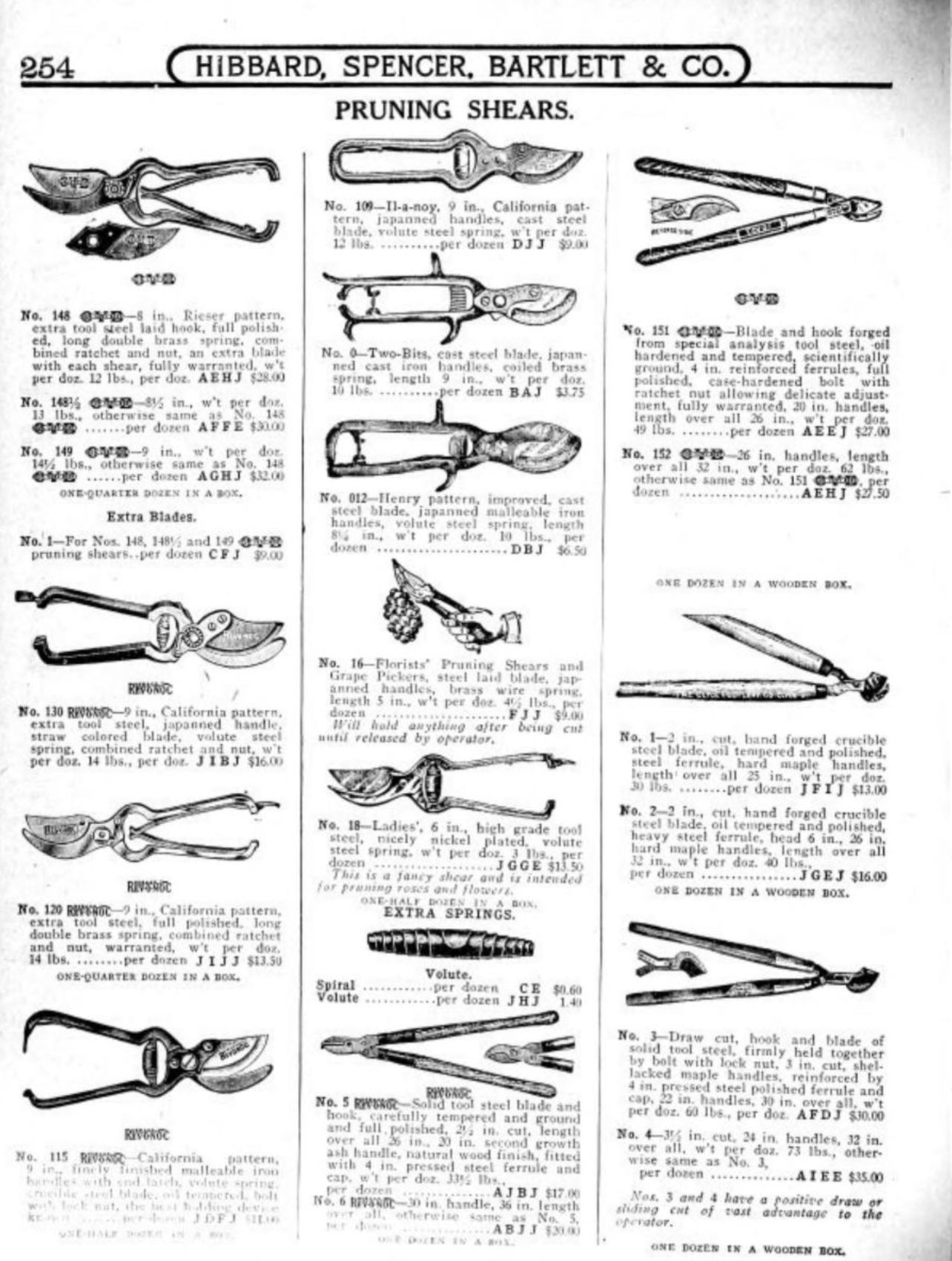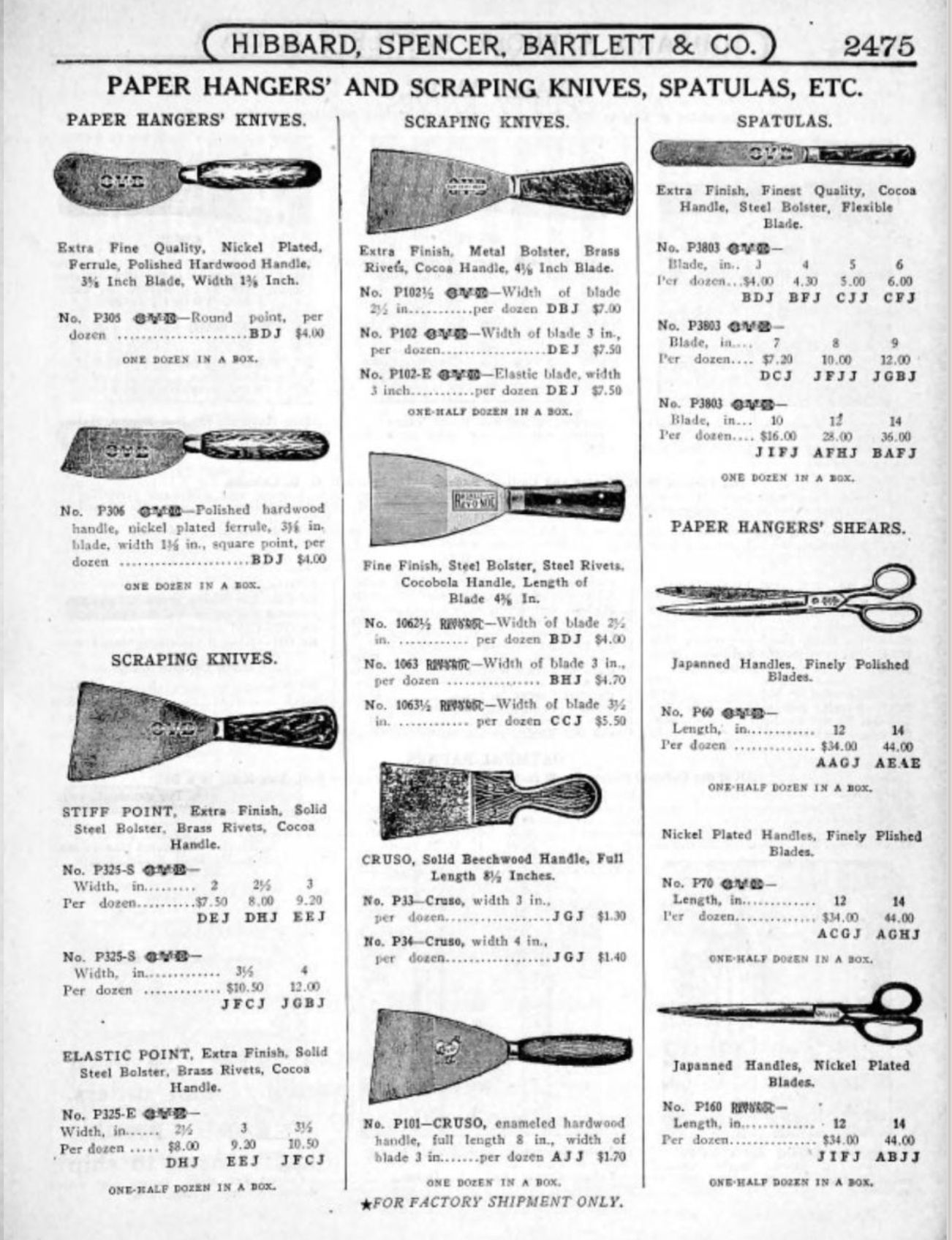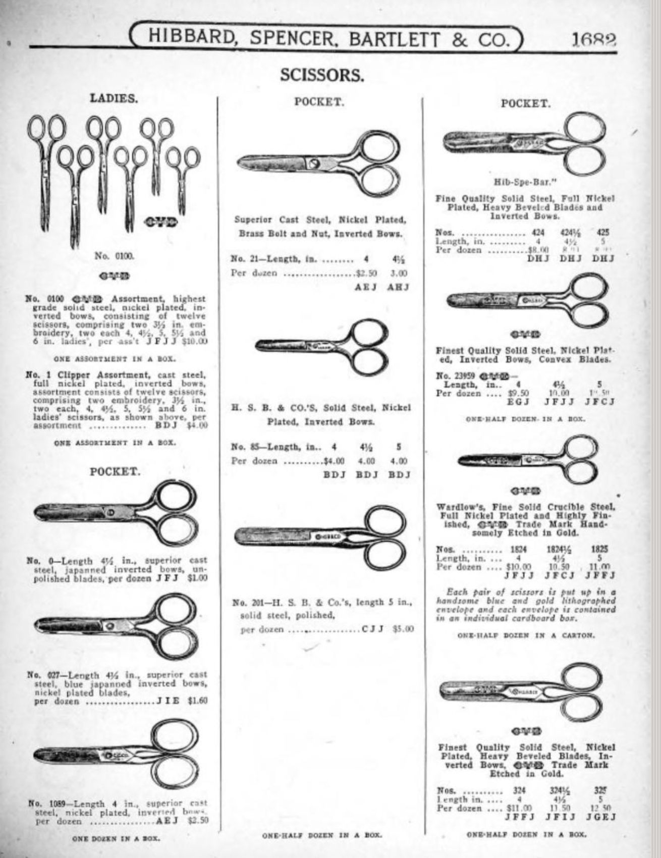 Hibbard, Spencer, Bartlett & Co. were suppliers of tools and hardware based in Chicago. Their 1916 Catalogue illustrates a range of scissors, shears, and snips, including:
