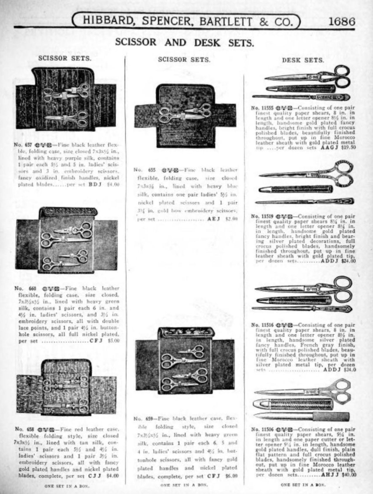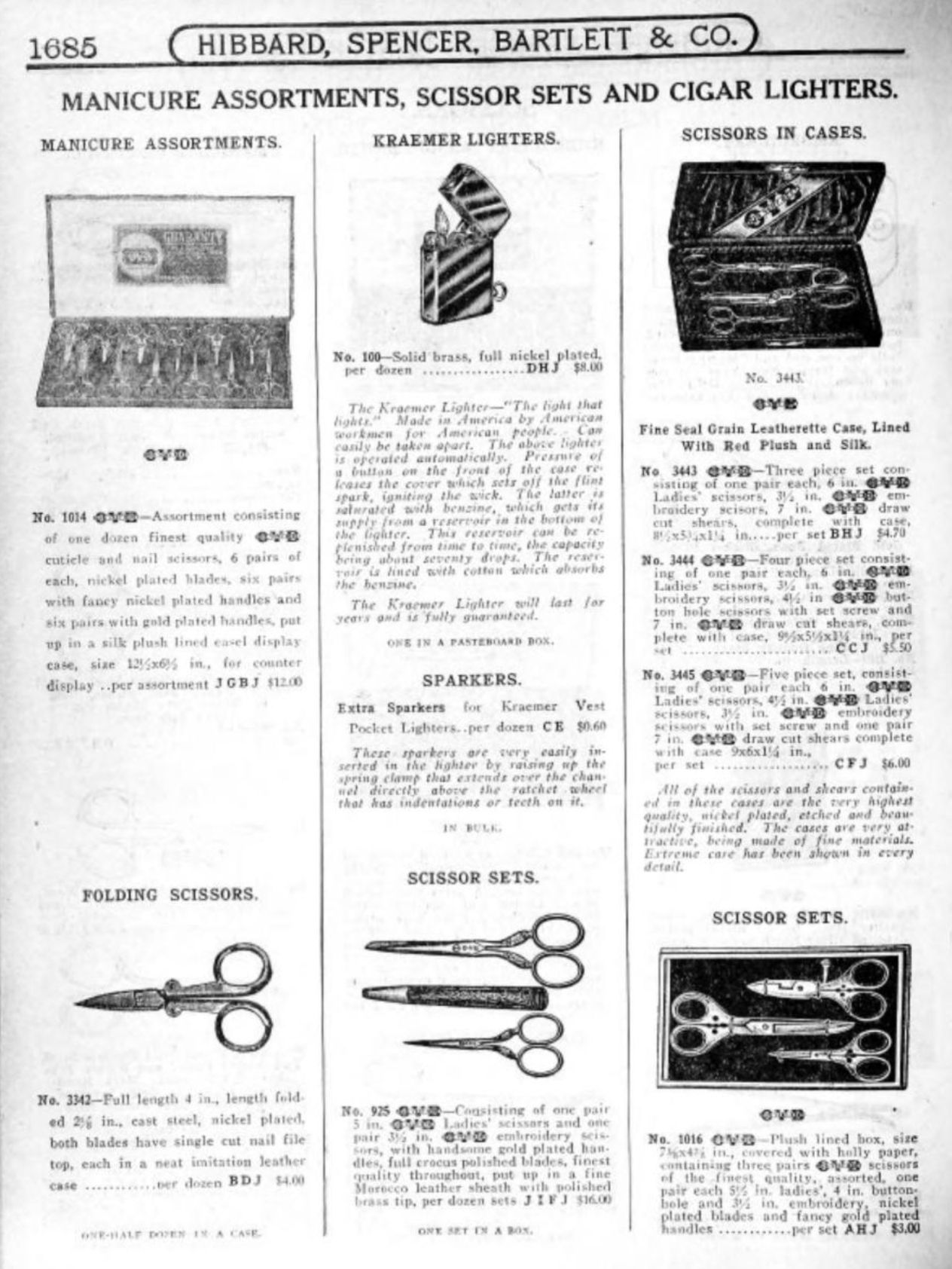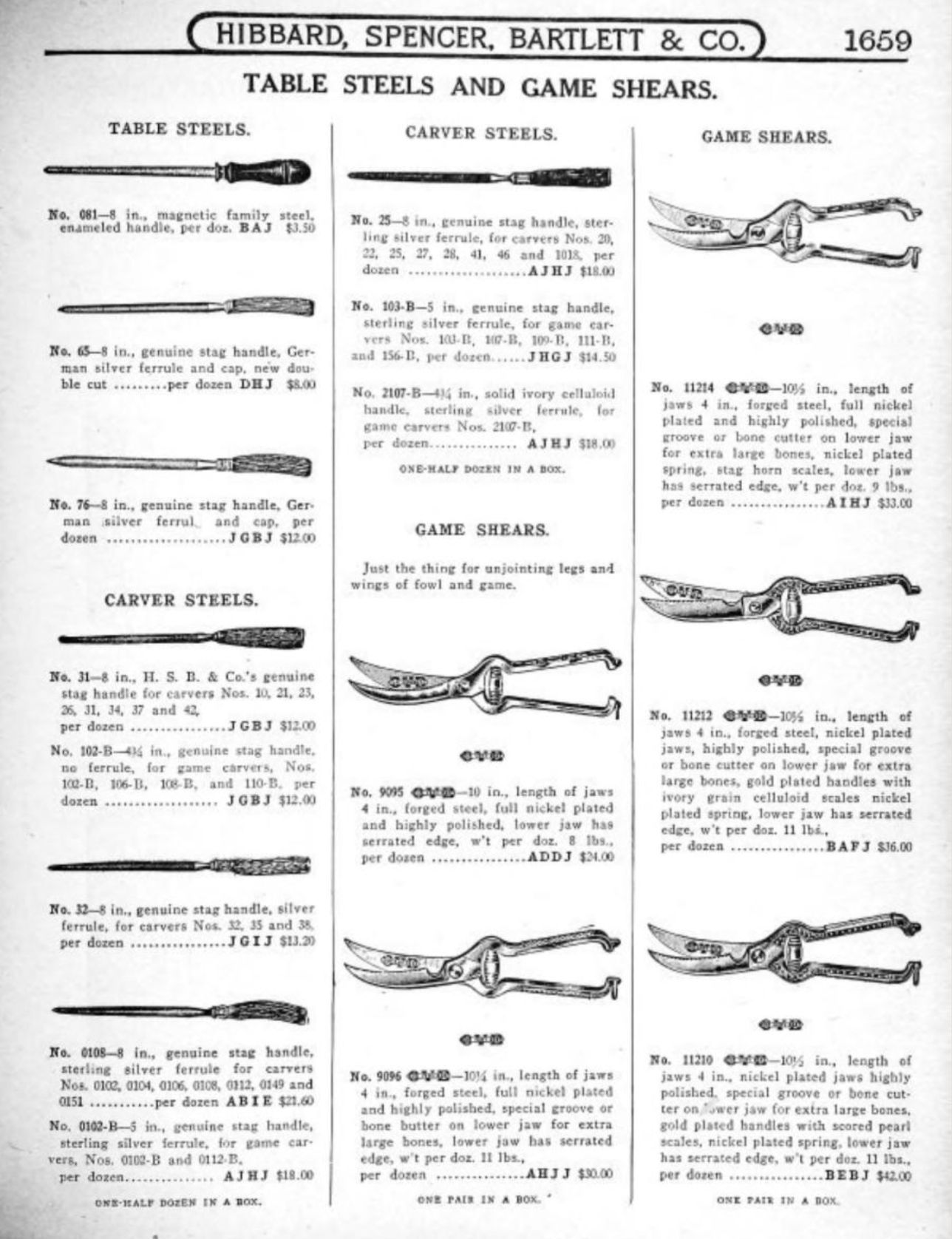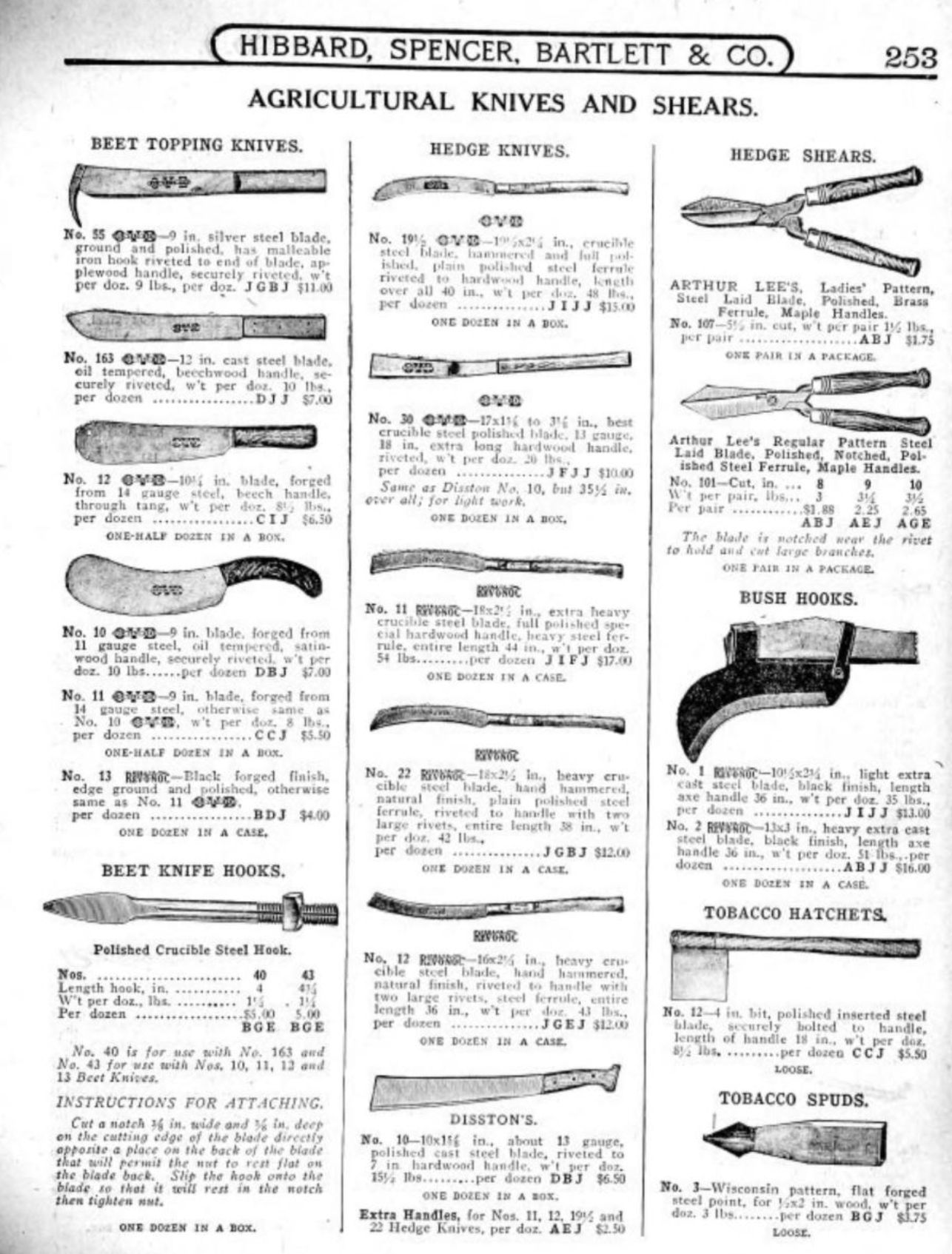 Hibbard, Spencer, Bartlett & Co. were suppliers of tools and hardware based in Chicago. Their 1916 Catalogue illustrates a range of scissors, shears, and snips, including: