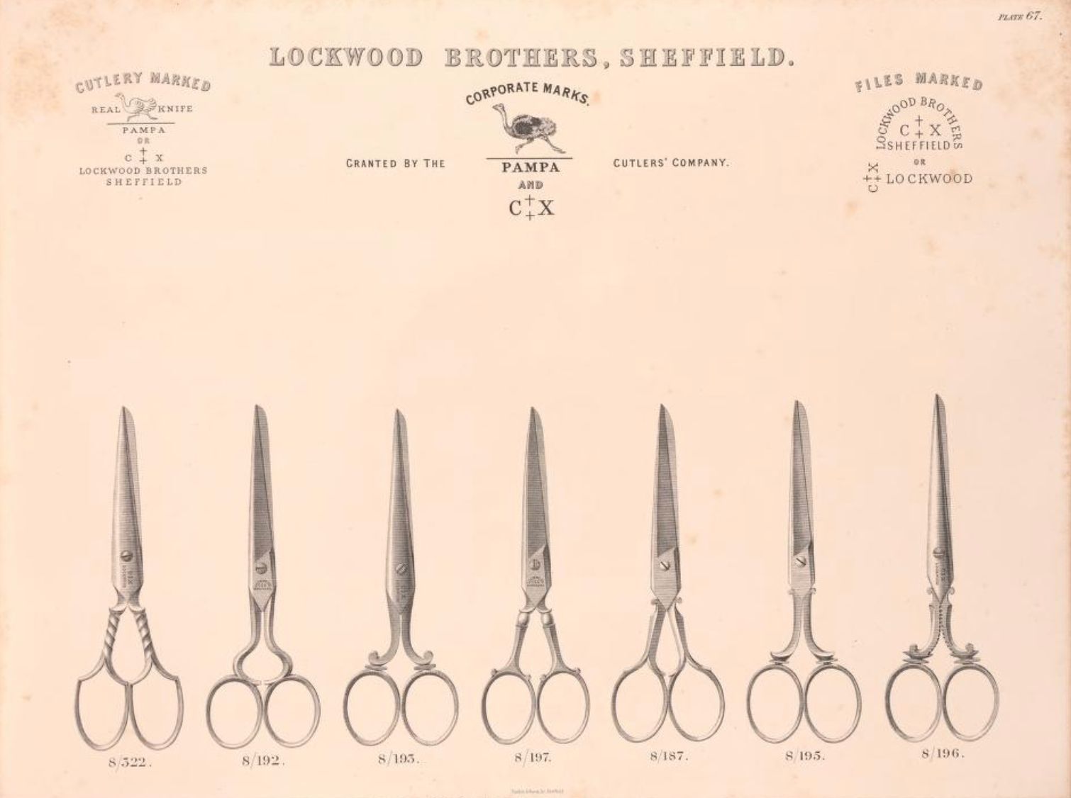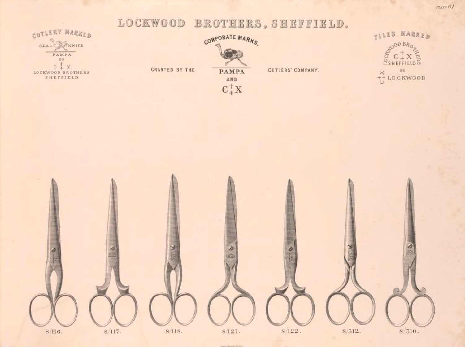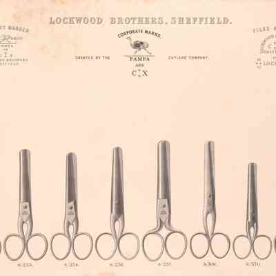 Lockwood Brothers were a cutlery manufacturer based in Sheffield. Their 1864 Colonists' Guide To The Selection Of Cutlery illustrates a range of scissors produced.Publication Details