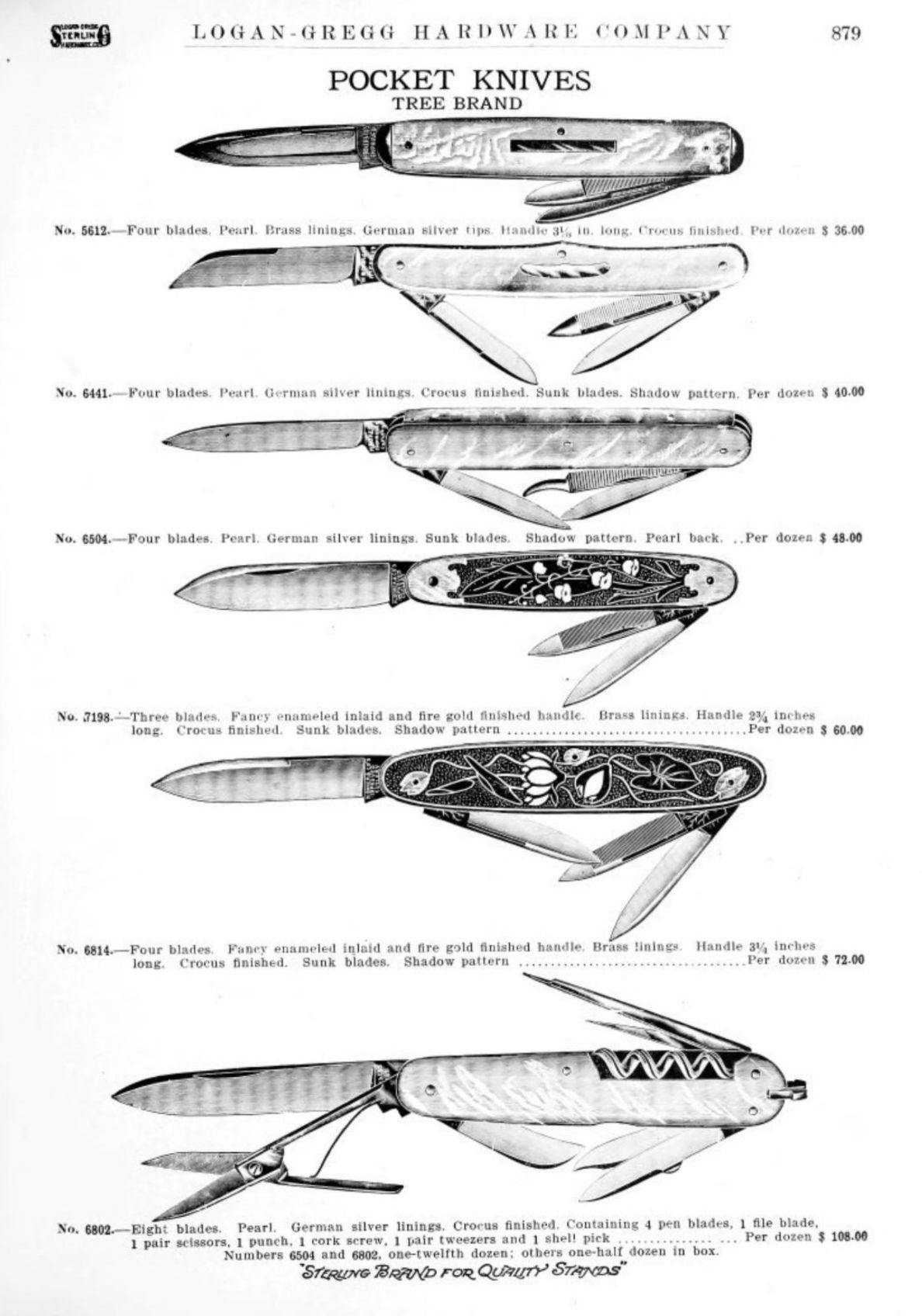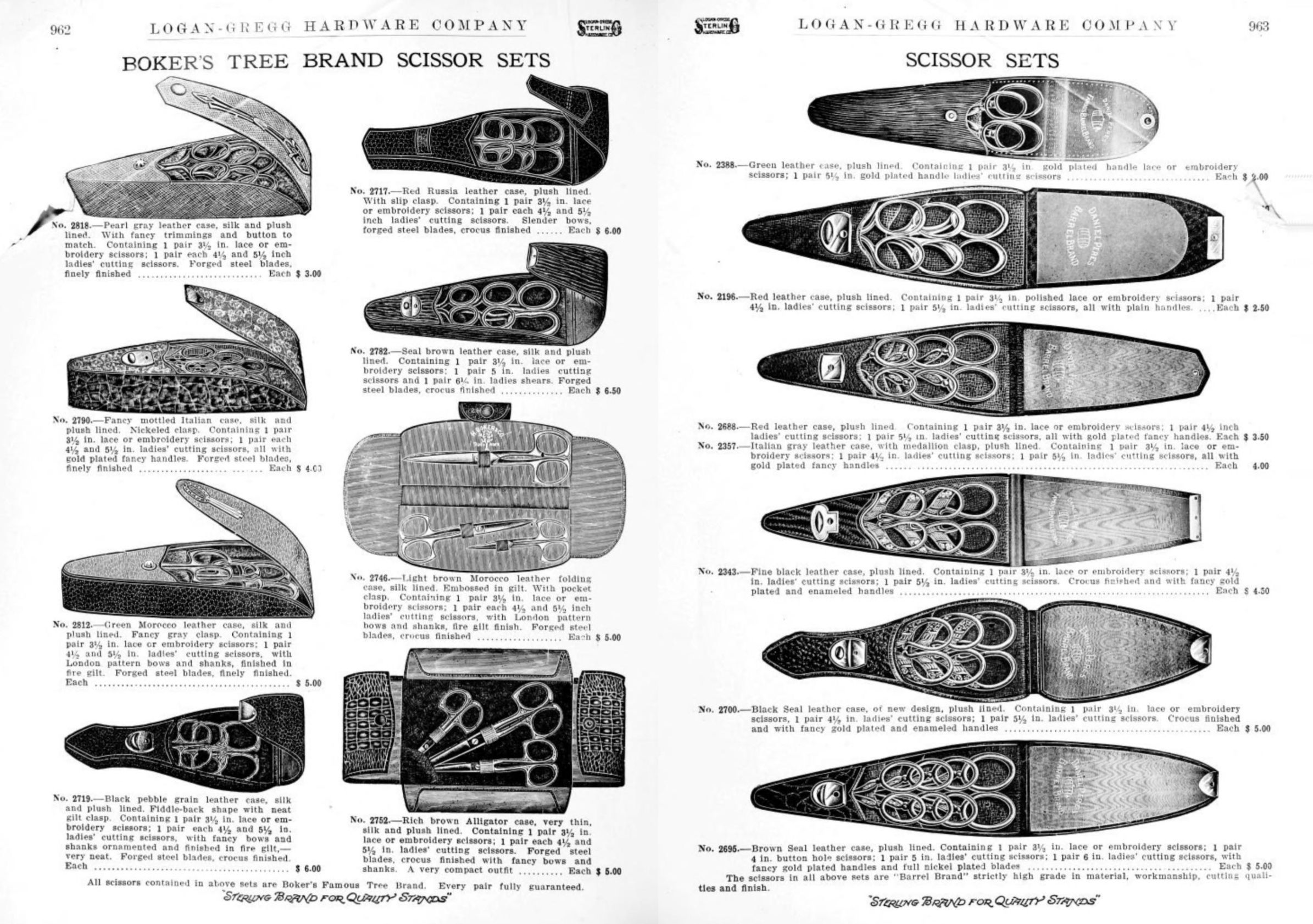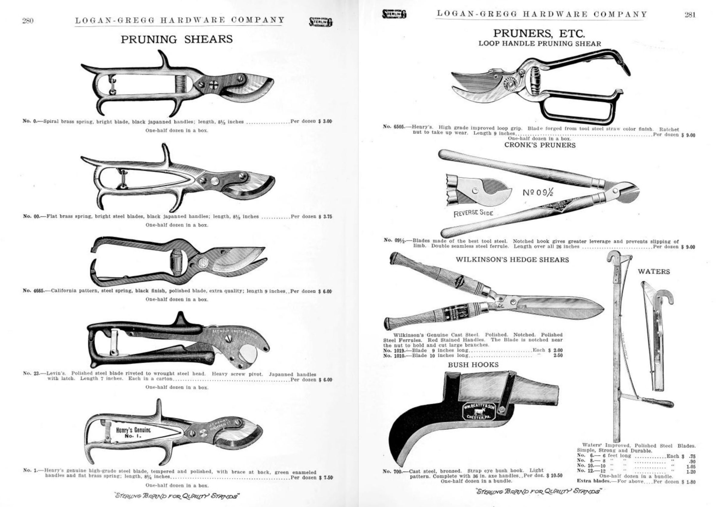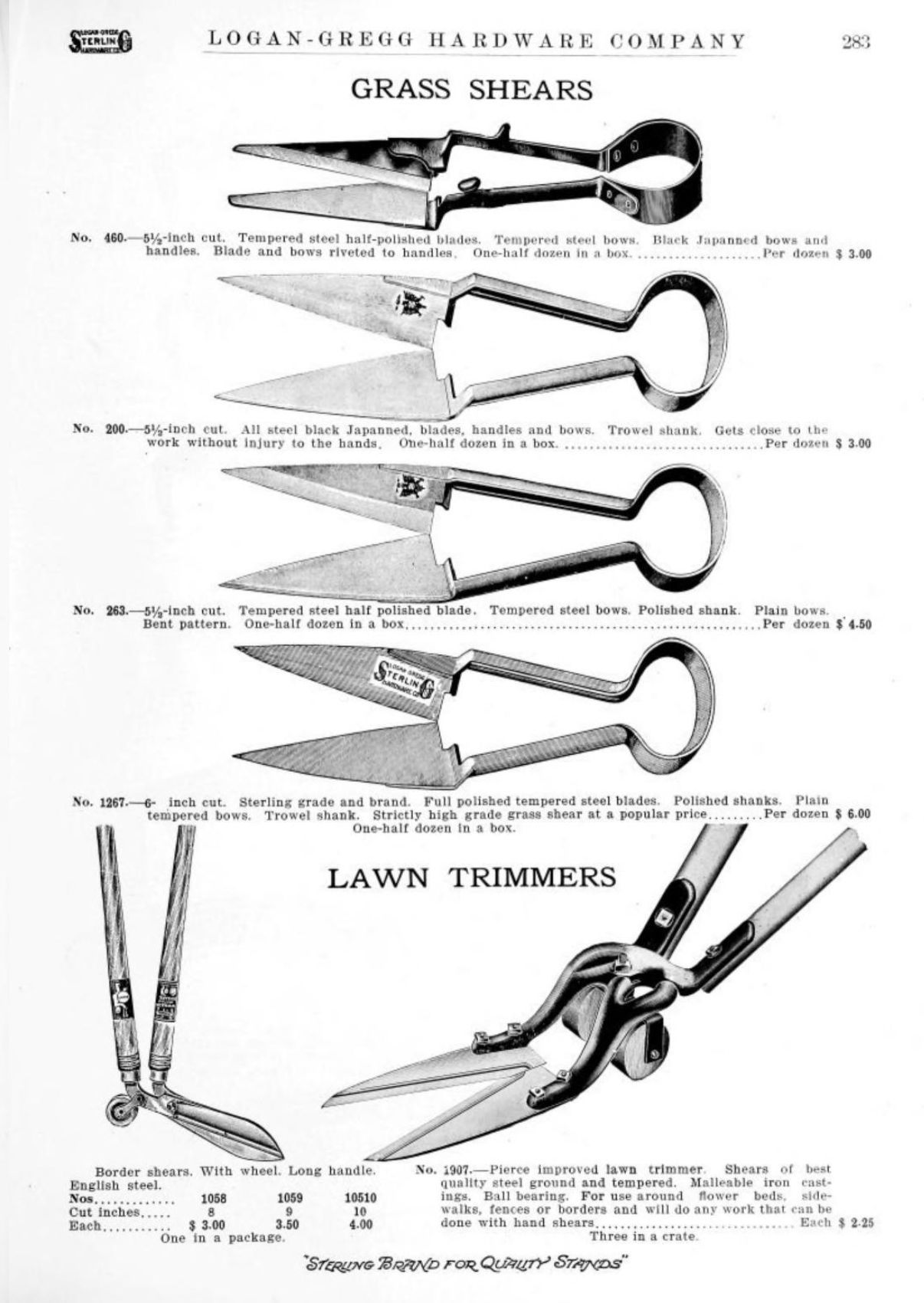 Logan-Gregg Hardware Company were wholesale distributors of tools and hardware. Their 1912 Catalogue illustrates a range of scissors, snips, and shears, including:
