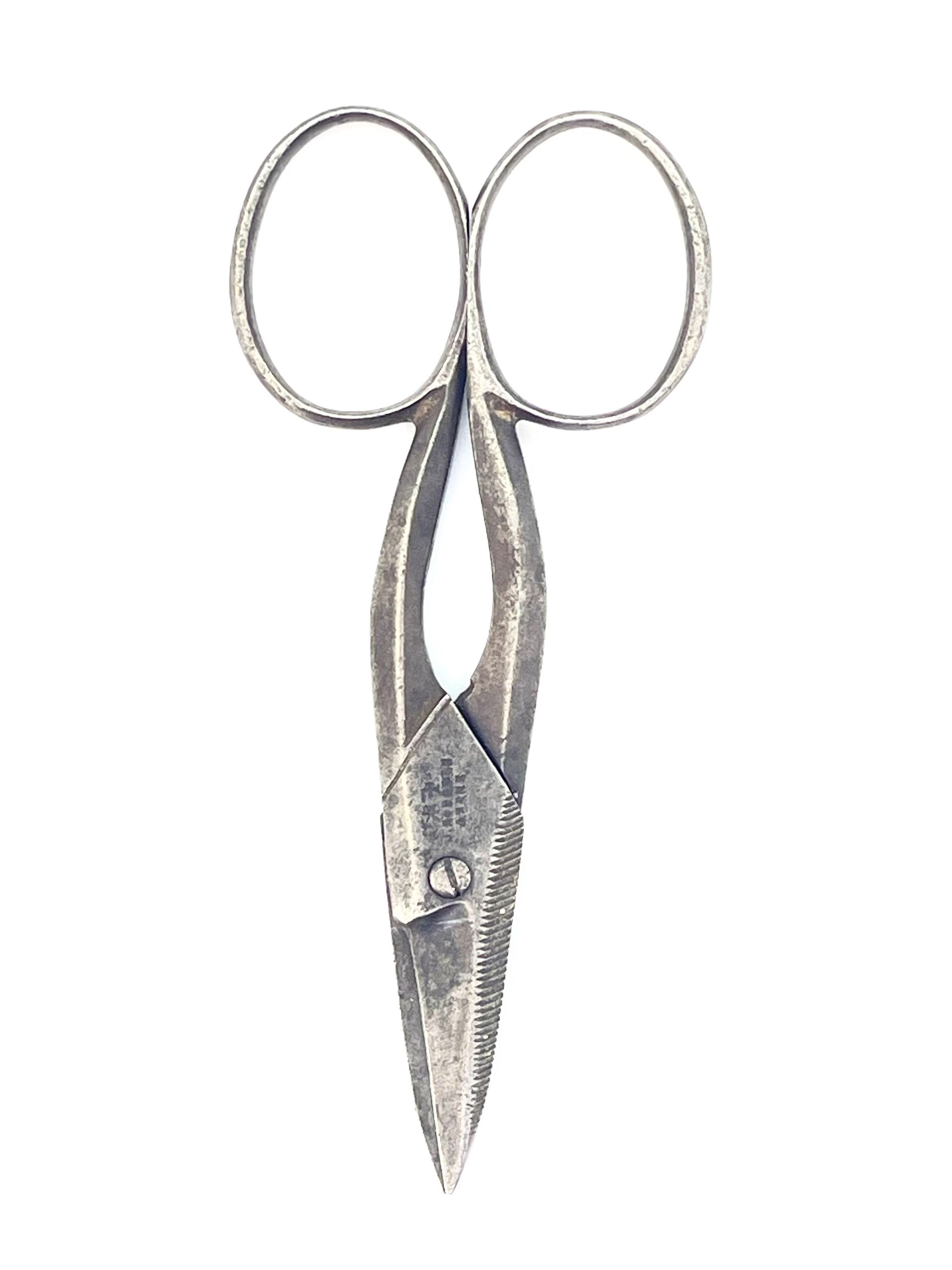 A small pair of manicure scissors marked "J. RODGERS & SONS" with the star and maltese cross design. Possible pairing marks on unders. Tup shanks with a screw pivot. Shoulder is st1, blade is cs4 with a leaf point. The outer edges of both blades form nail files. Dated c. 1850.Category
