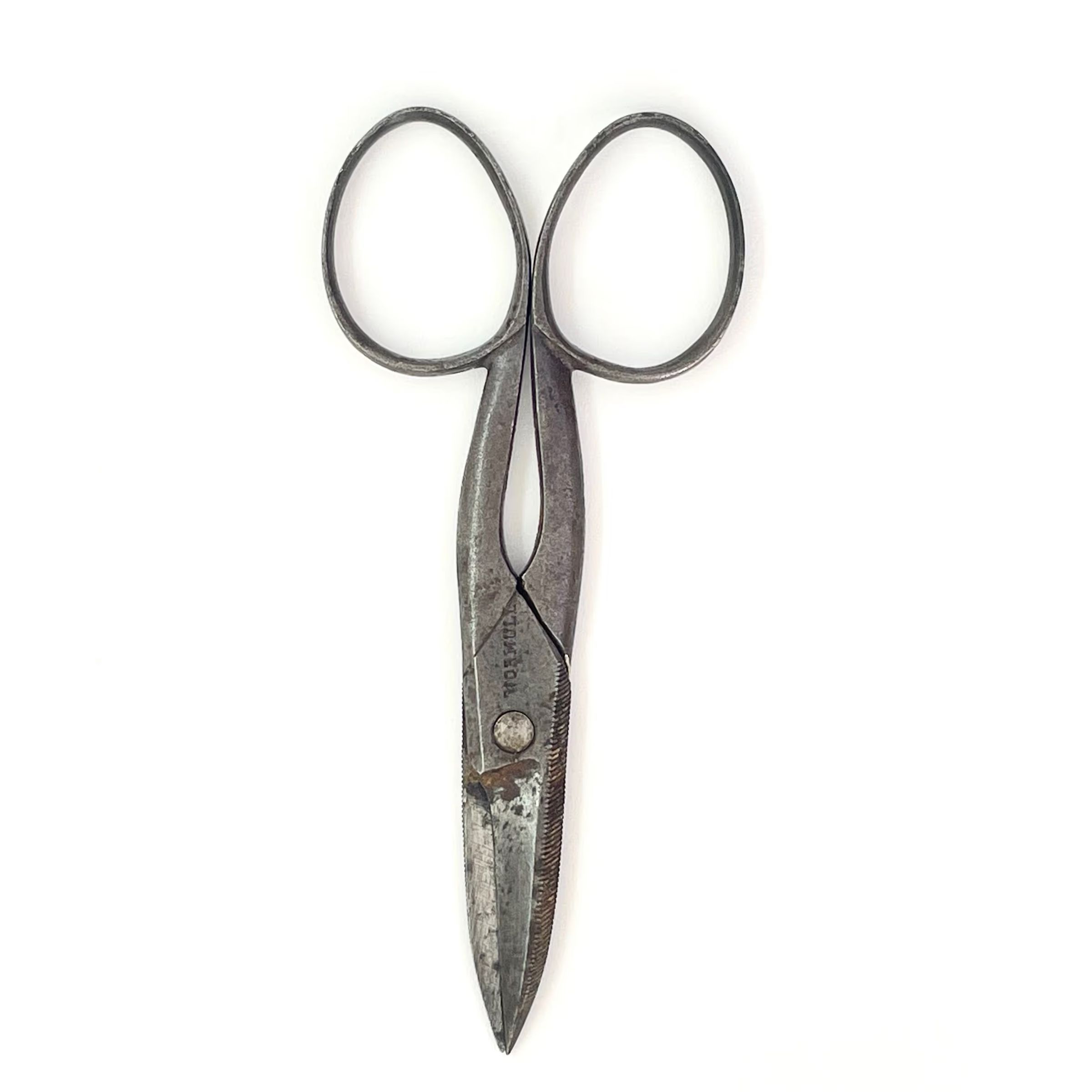 A chunky pair of steel manicure scissors marked "WORMULL" and stylistically dated to the second half of the 19th century, England. (Getty Images has a picture of a cutlers in London called Wormull, which fits the time and location - additional research needed).