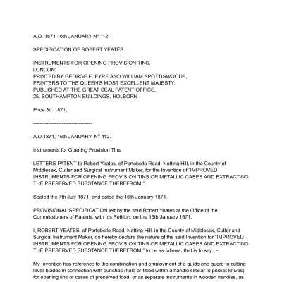 1800s, british, patent summary, shears, yeatesDescription