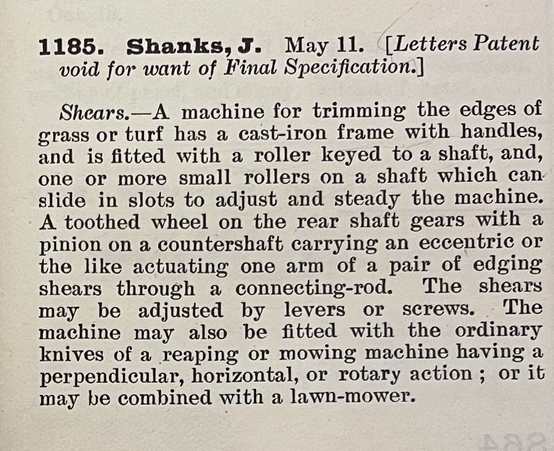 1800s, british, patent summary, shears, garden, shanksDescription