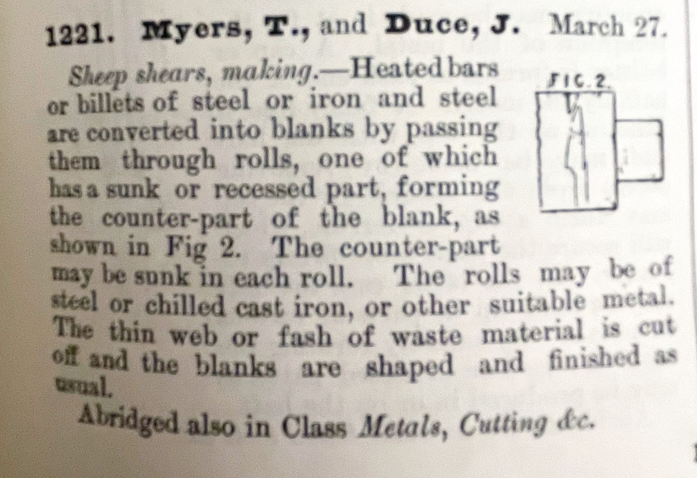1800s, british, patent summary, shears, sheep, myers, duceDescription